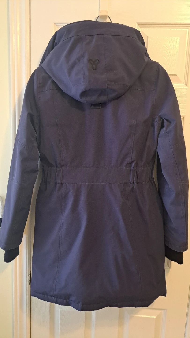 A women's Tna Bancroft Parka in size medium. It's the warmest parka style with waterproof canvas. It's filled with premium goose down and RDS certified. Designed in Canada, made in Vietnam.