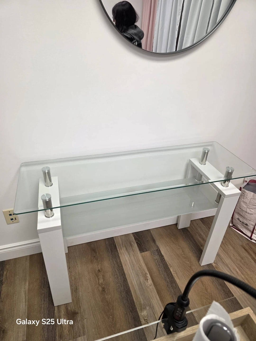 White Console Table with Glass Top