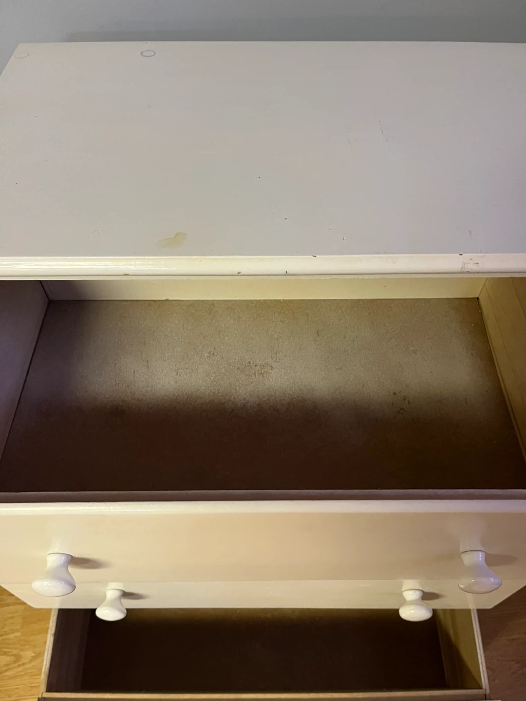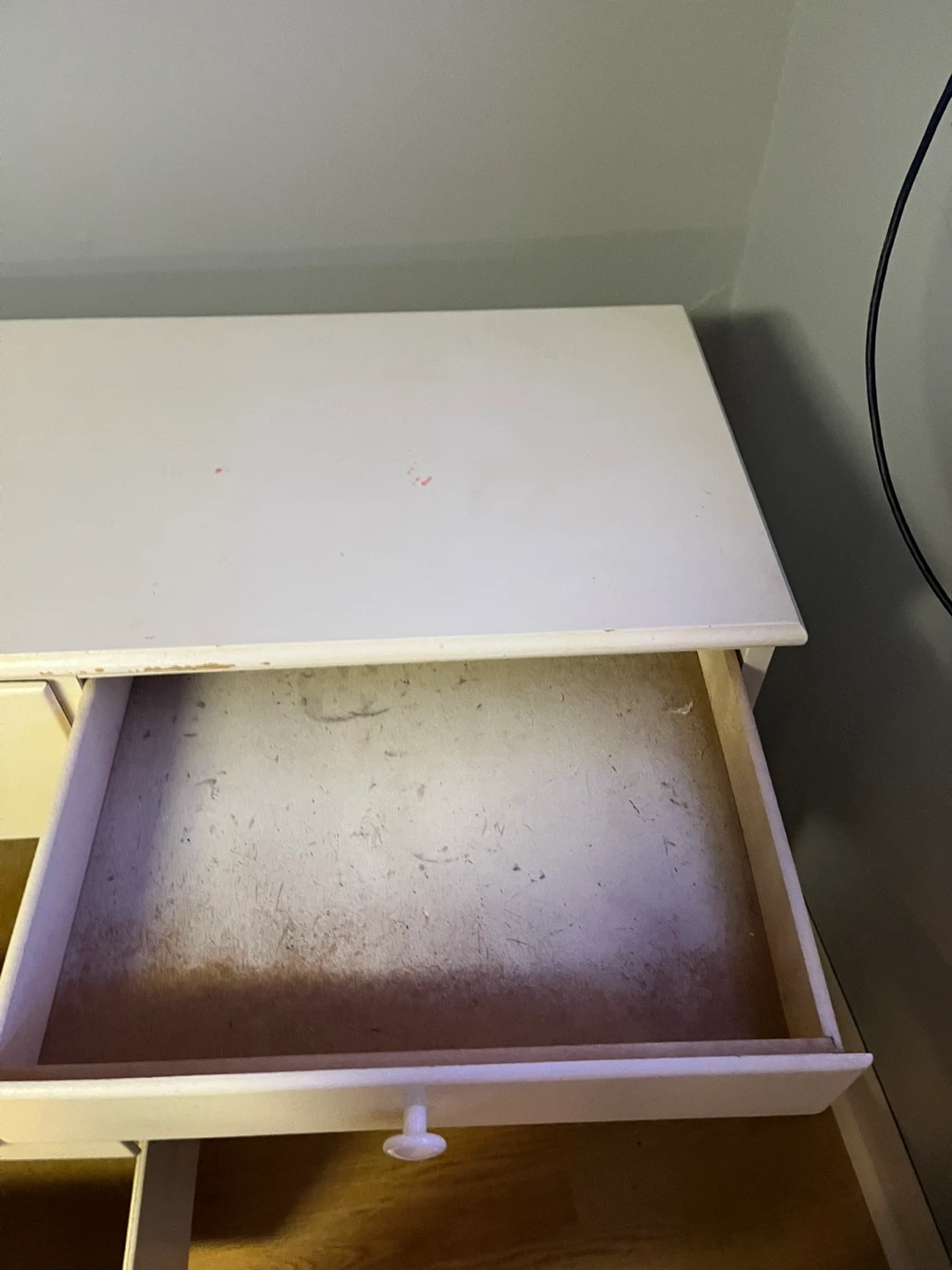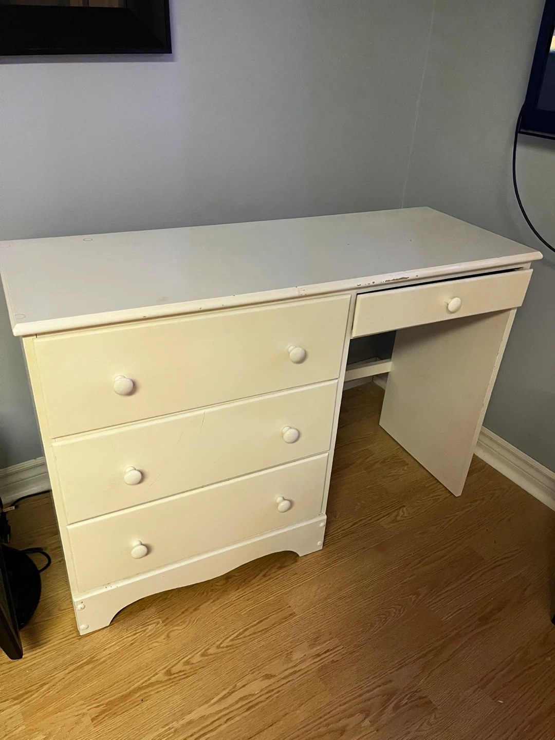 1980s kids white wooden desk, used for many years but still in solid condition. Needs new paint as has scratches and paint chips but would work great right now for any child or as any paint project!