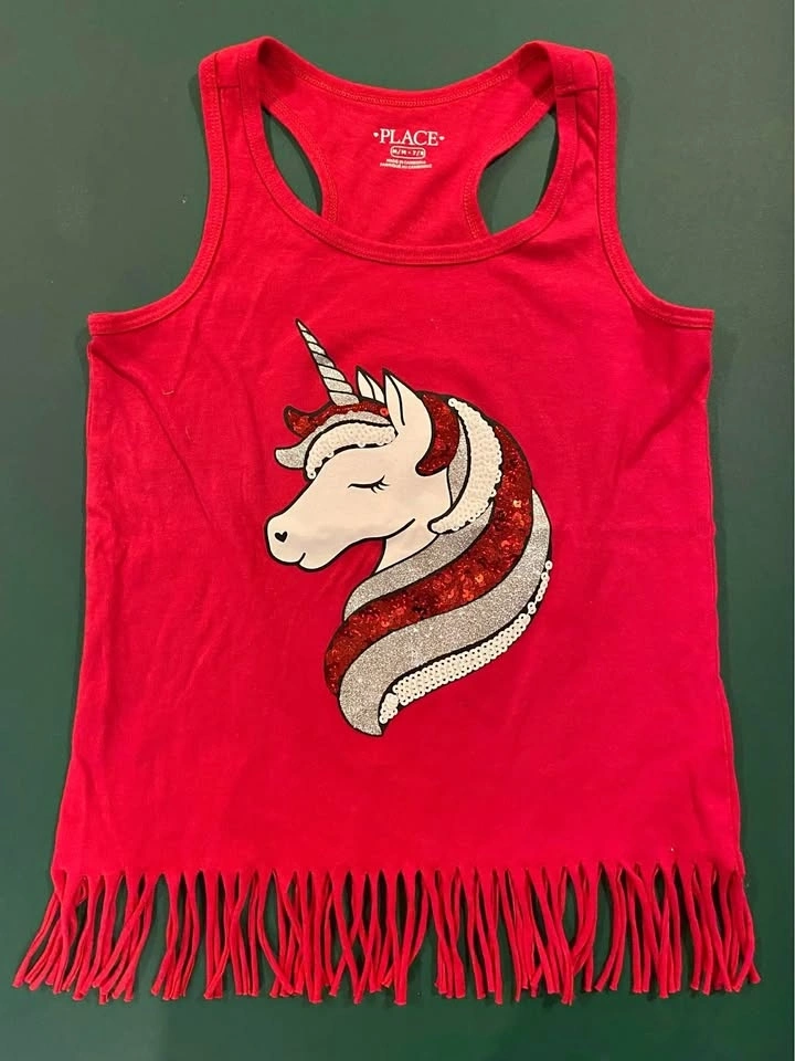 EUC Children's Place CANADA DAY Unicorn Tassle Tank Top Size 7/8