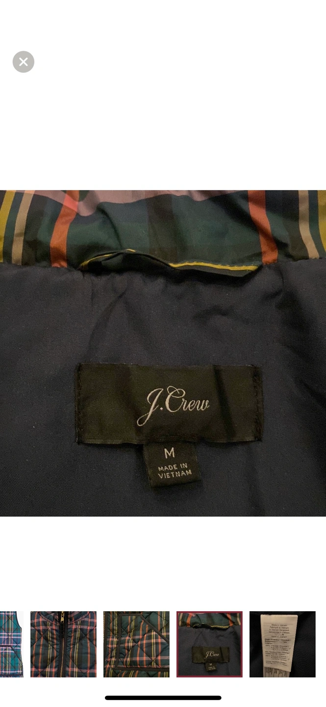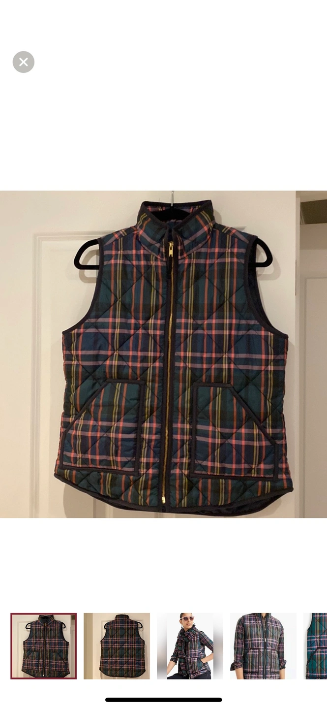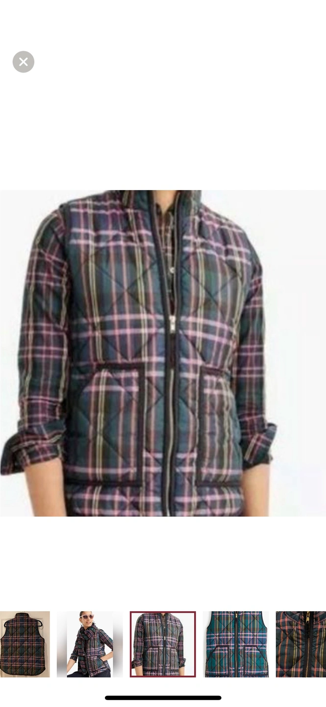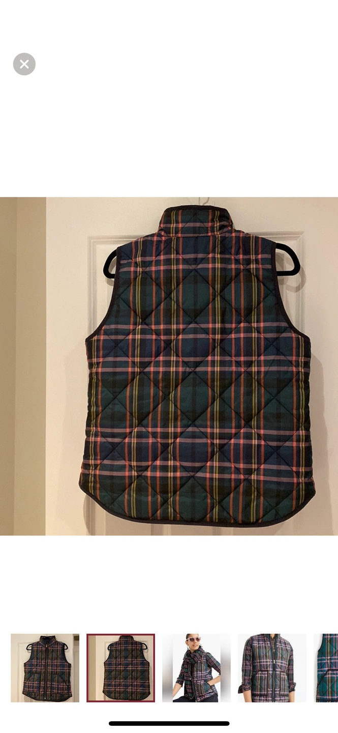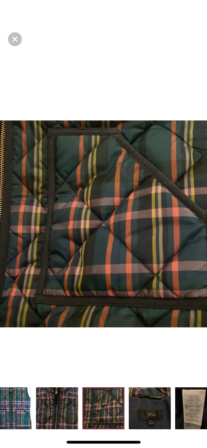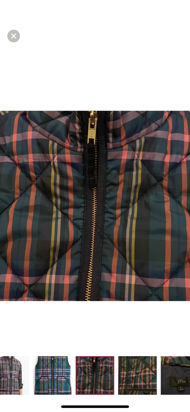 J Crew Signature Tartan Puffer Vest in a Size Medium