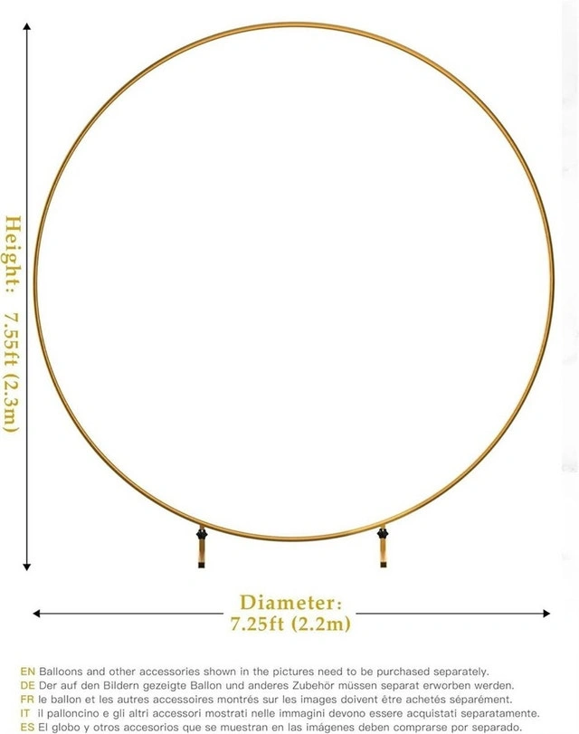 Add a touch of elegance to your next event with this used round balloon arch! It's perfect for birthdays, weddings, or any celebration that needs a bit of whimsy. This arch is easy to assemble and disassemble, making setup and takedown a breeze. Details: Height: 7.55ft (2.3m), Diameter: 7.25ft (2.2m). Includes: Metal tubes, metal legs, water bases, and user guide. This arch has been used a few times and is ready to make your event sparkle. Priced at $75, reflecting its good condition. If the ad is up, it's available.