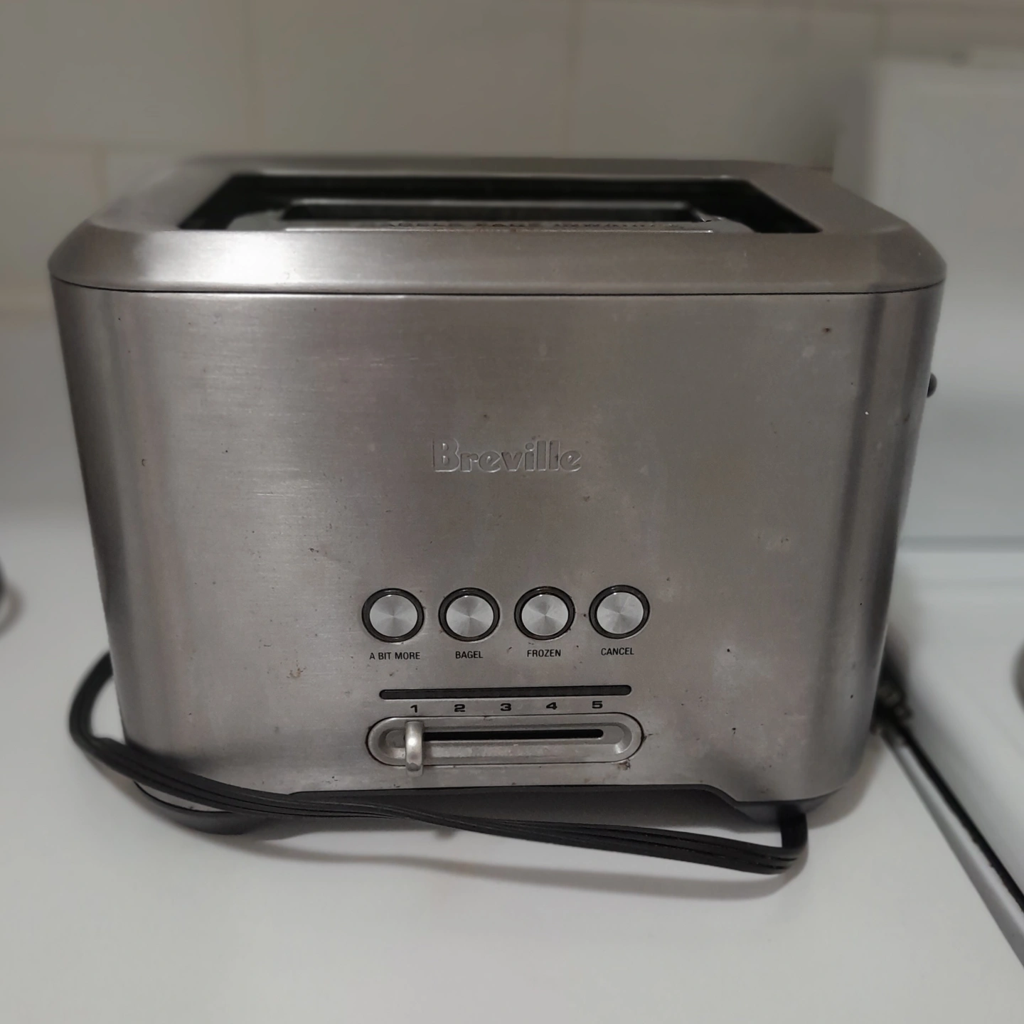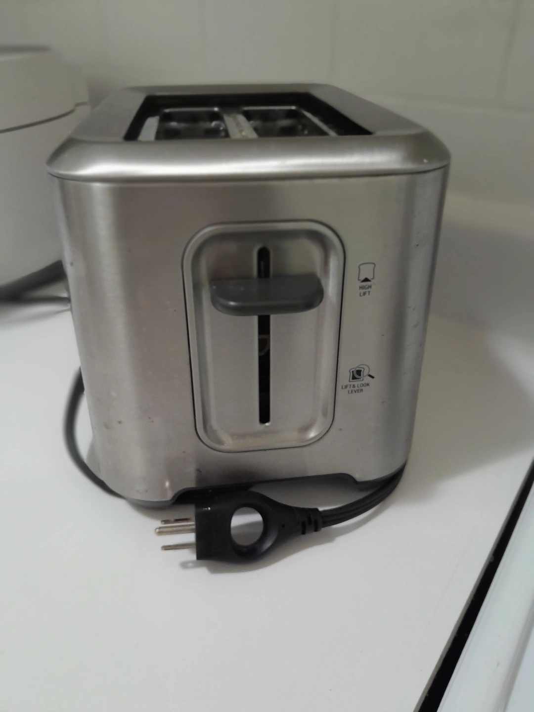 Perfect kitchen appliance for toasting bread. Its made of stainless steel and color silver. Very sturdy foundation. High quality.