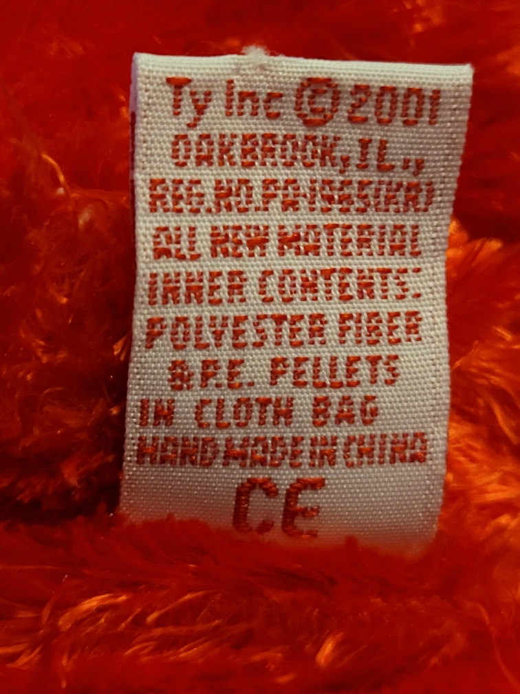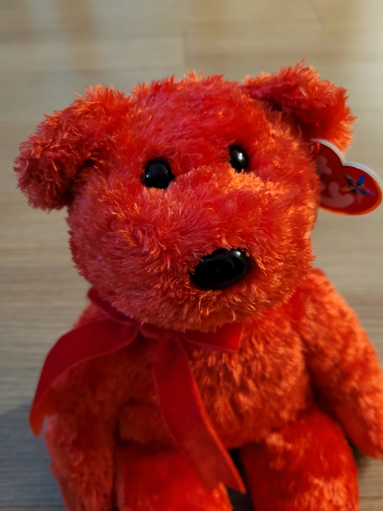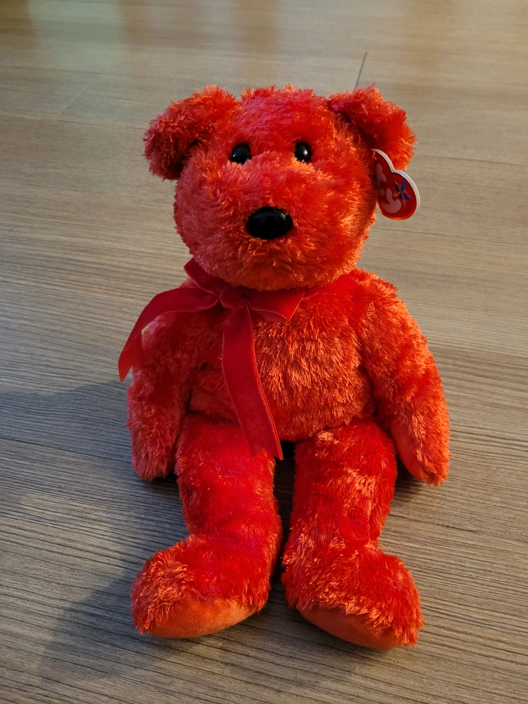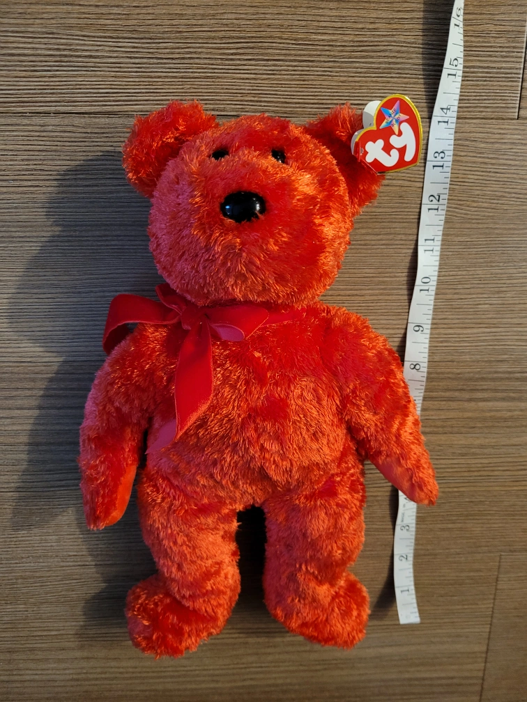 Sizzle 2001 Teddy Bear. Gorgeous firey red bear. Perfect for you or Valentine's Day. Ear and tush tag.