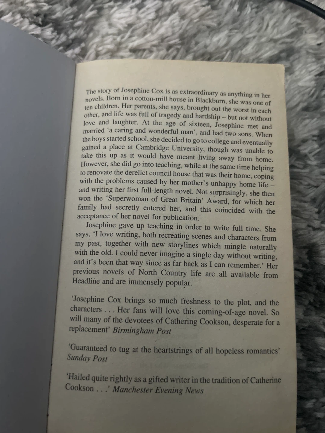 Selling the book, Her Father's Sins by Josephine Cox! It's a classic novel with a compelling story. Perfect for anyone who enjoys a good read