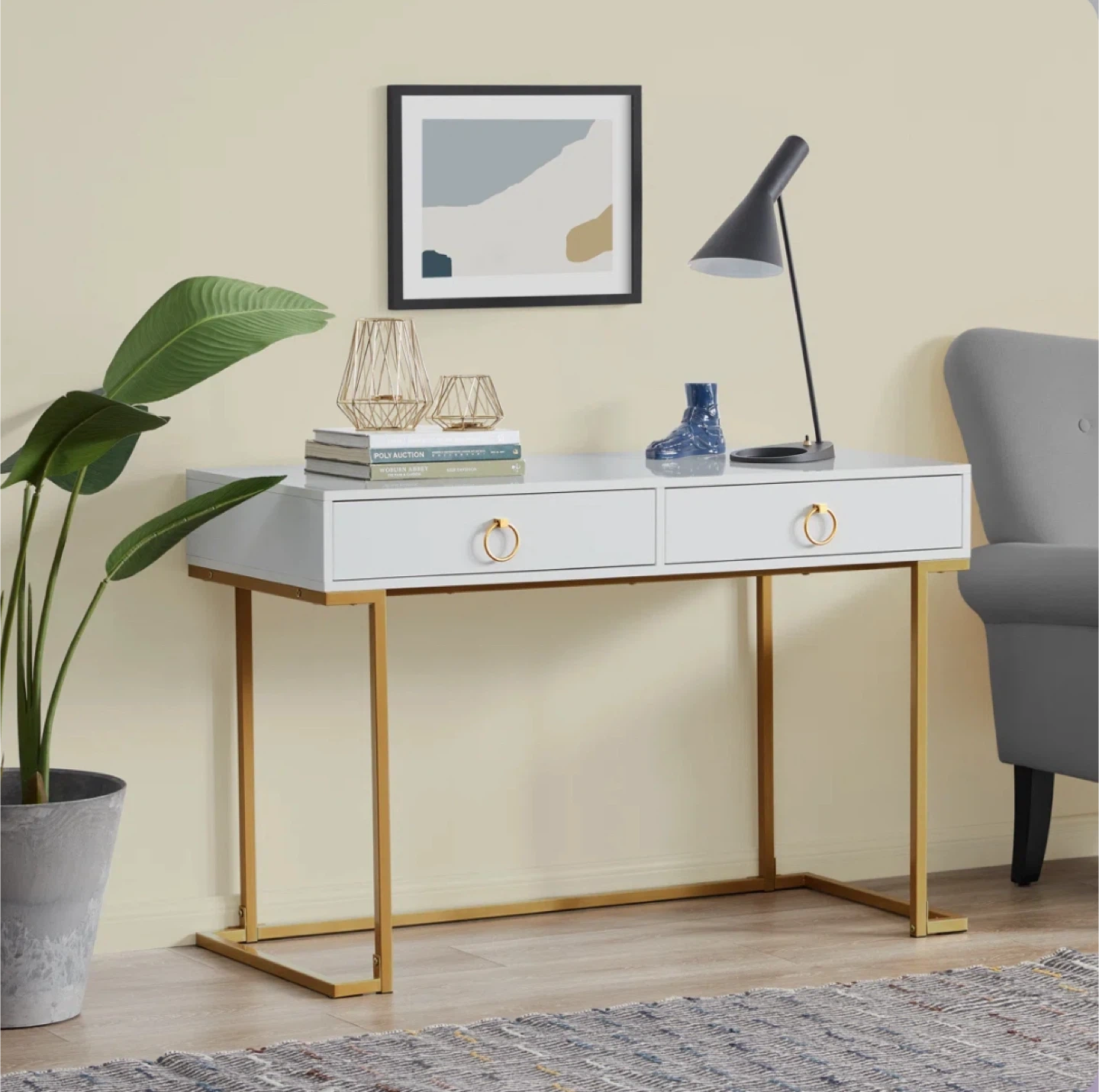 Stylish White and Gold Desk