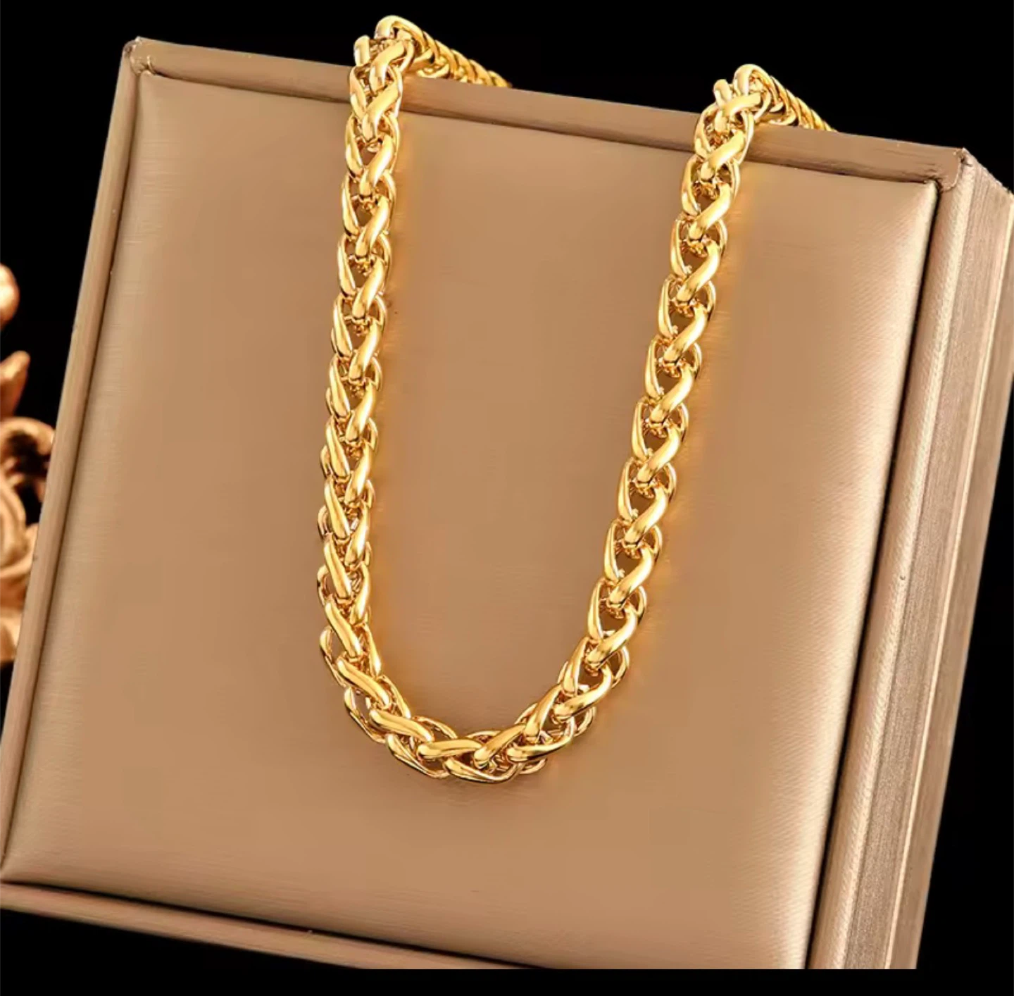 πŸ†A sturdy gold-tone necklace with a wheat chain design. It's 39+5cm long and weighs 33.4g. This piece adds a touch of shine to any outfit!πŸ†