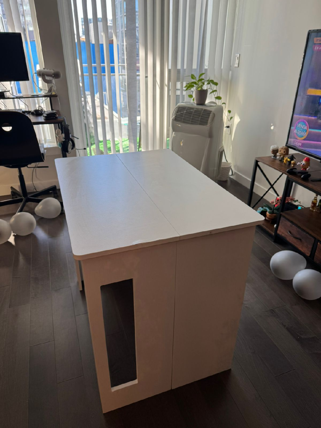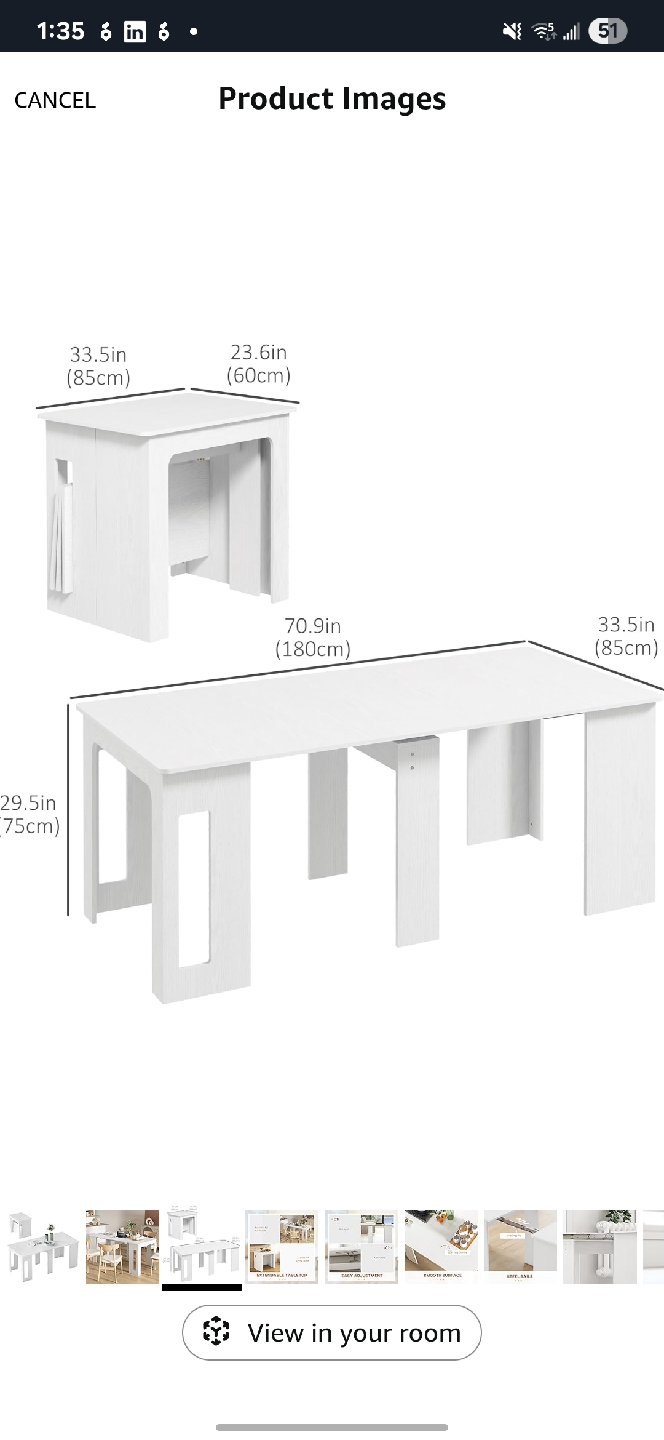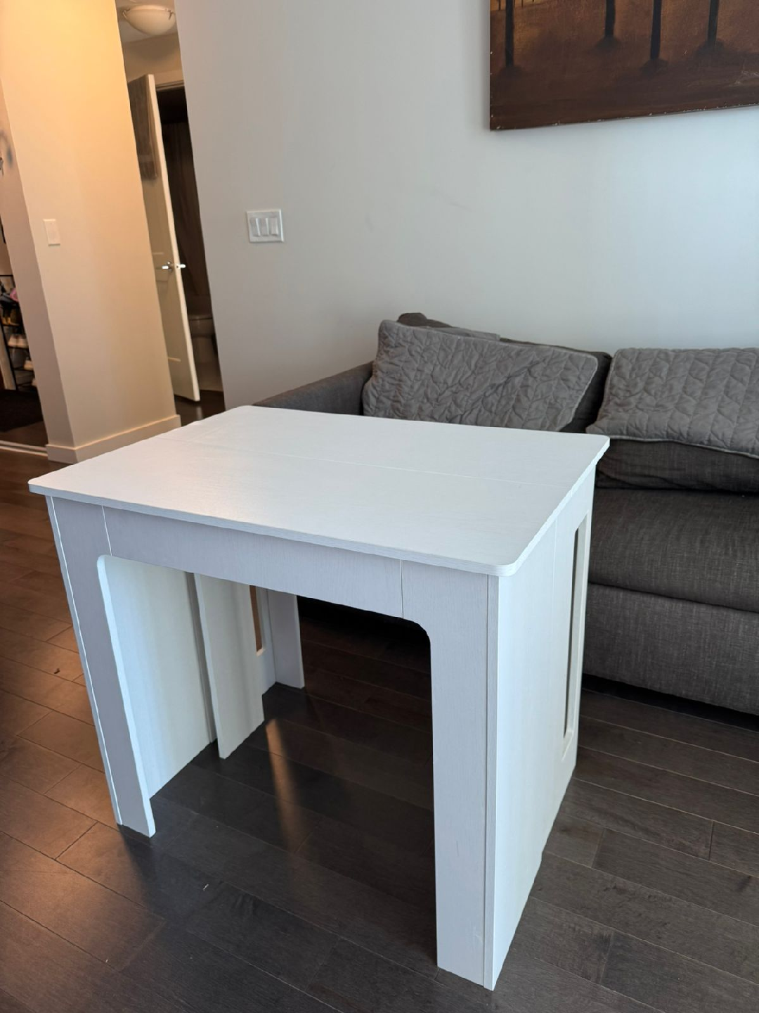 Selling a white extendable dining table in great condition! It's perfect for small spaces but can be expanded when you have guests over. The dimensions are 33.5 inches by 23.6 inches when closed, and it extends to 70.9 inches long. It's a versatile piece of furniture that will fit right into your home