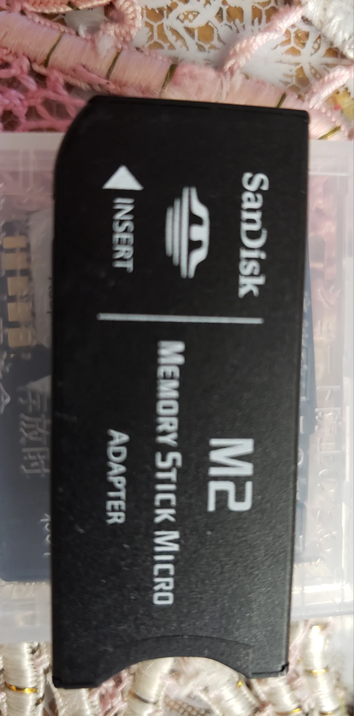 This is a SanDisk M2 Memory Stick Micro adapter. It's made in Japan. This adapter allows you to use M2 cards in slots that support Memory Stick Micro.