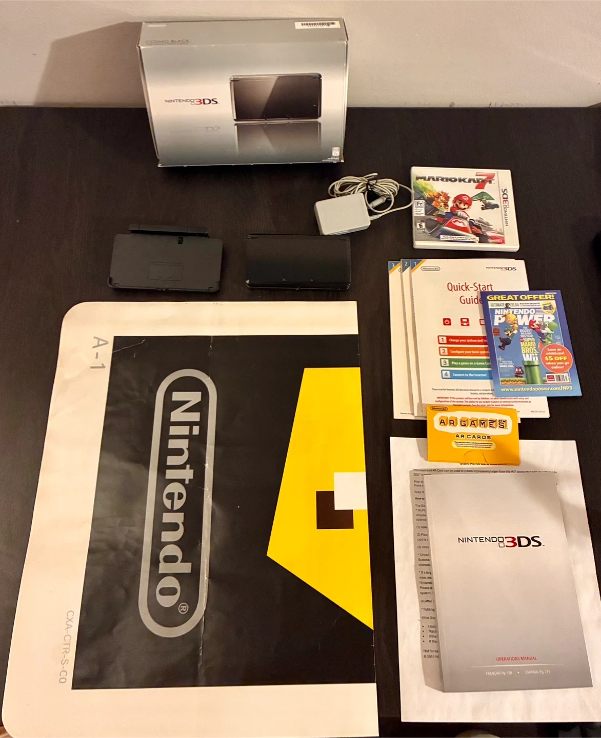 Nintendo 3DS Cosmo Black CIB Bundle w/MK7 & Giant AR Card