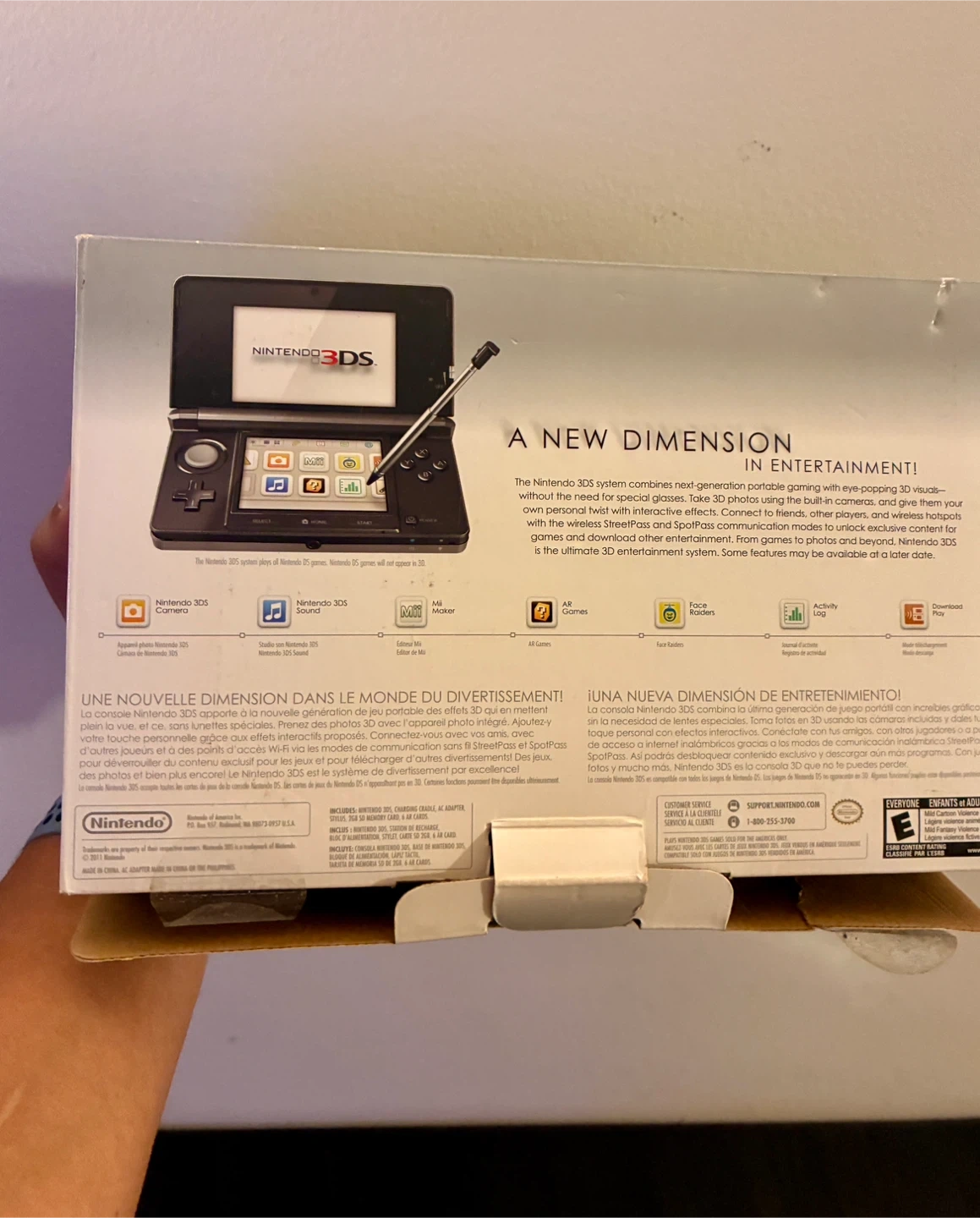 Dive into nostalgia with this used Nintendo 3DS Cosmo Black, a complete in-box (CIB) bundle that includes the Mario Kart 7 game and the giant AR (Augmented Reality) card. This handheld console boasts a sleek design and comes with all original packaging and inserts, offering a classic gaming experience. The console is used, has been well-maintained, and is in very good condition, ready for hours of portable fun.