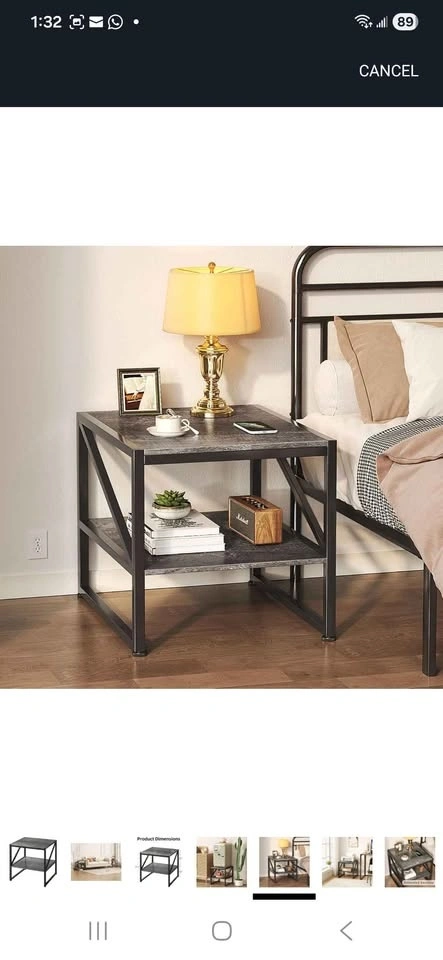 Brand new nightstand, can also be used as a mini fridge stand, square side table, or end table for your living room or bedroom. Grey Oak color. From a pet-free and smoke-free home.
