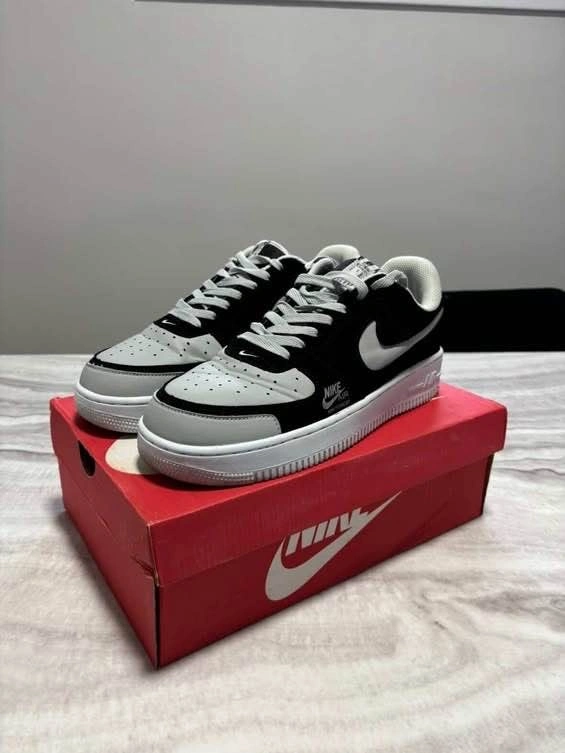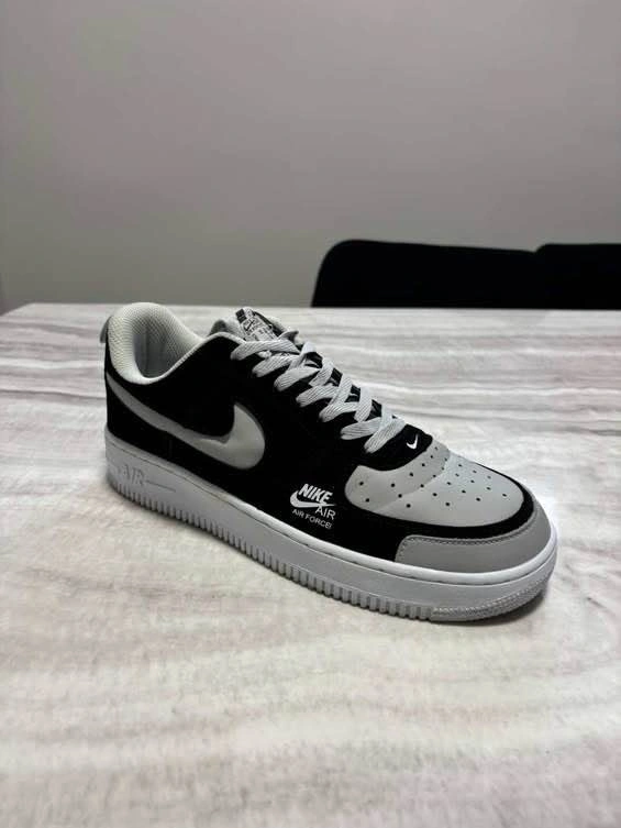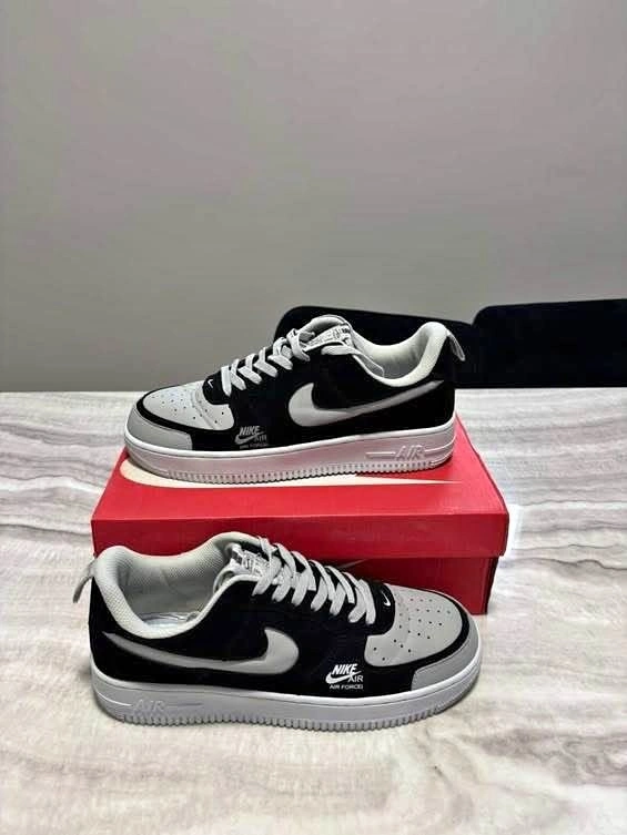 Selling a pair of Nike Air Force 1s in black and grey colour. These shoes are in great condition and come with the original box.