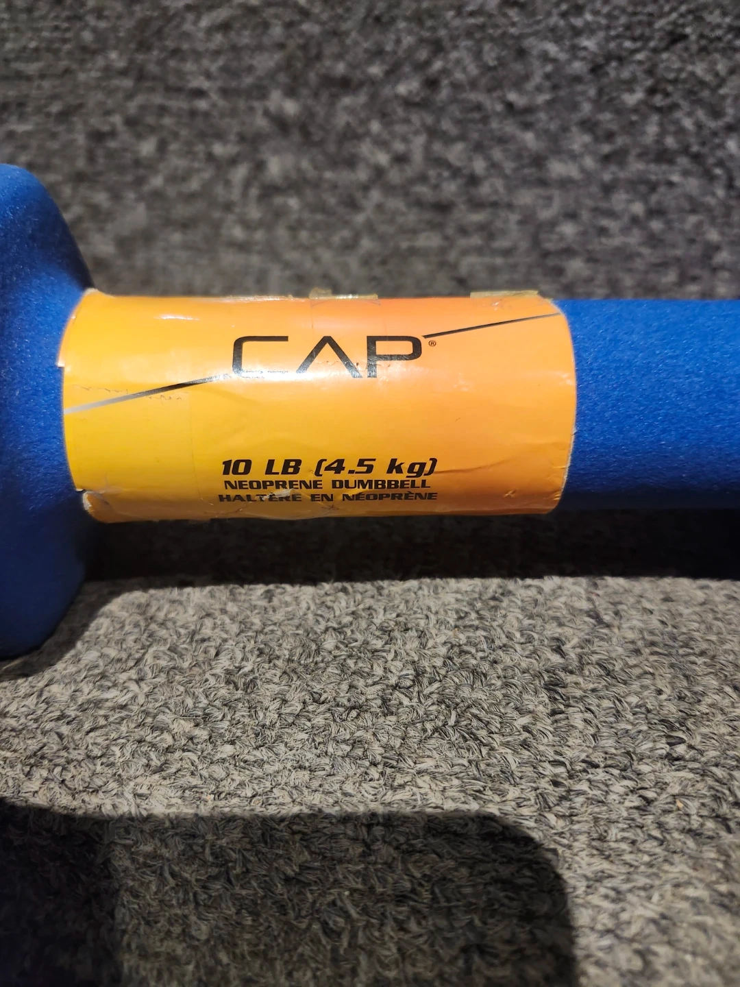 Buy & SellCAP Neoprene Dumbbell - 10 LB (4.5 kg)CAP Neoprene Dumbbell - 10 LB (4.5 kg)$10This is a blue CAP 10 LB (4.5 kg) neoprene dumbbell. It's great for home workouts. Add it to your fitness gear for strength training!WHERE TO MEETCheck LocationView MapSELLERverifiedE DBendale1000+390 reviews1 chats·0 favorites·12 viewsSEND CHAT TO SELLERHi E D! I’m interested in your listing.Hi E D! I’m interested in your listing.Get the Karrot app to chatSign In to chat