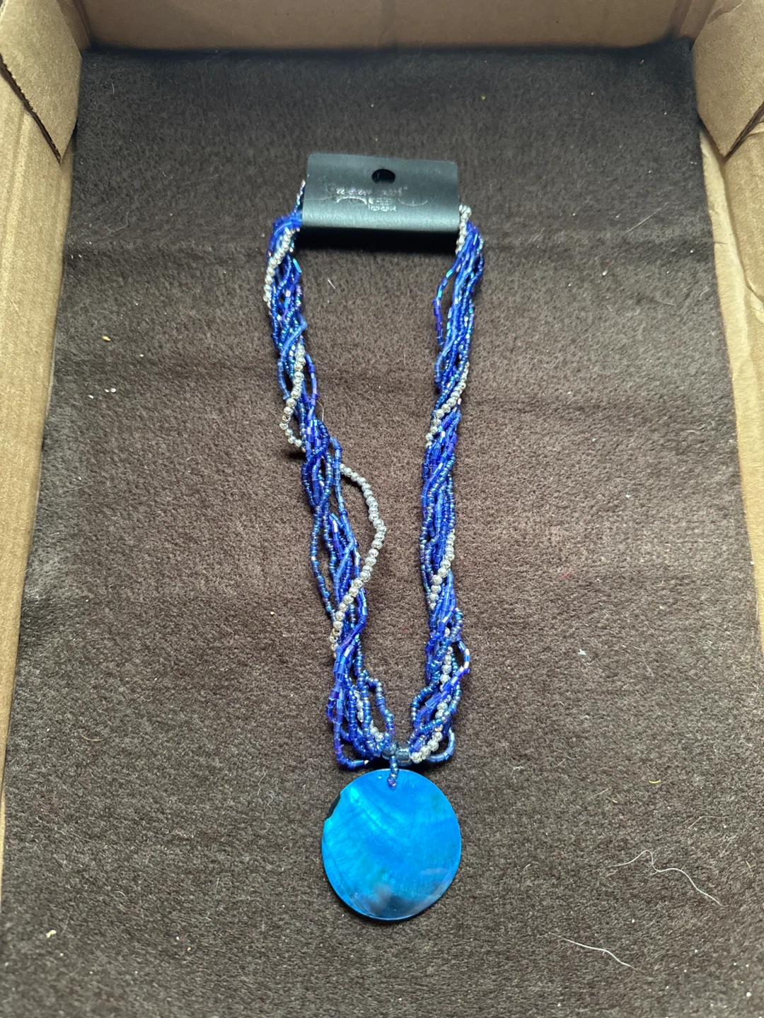 1 / 11 / 1Buy & SellBlue Beaded Necklace with Round PendantBlue Beaded Necklace with Round Pendant$5Multi-strand beaded necklace in various shades of blue and silver. Features a large, round blue pendant. Beads appear to be glass or plastic.ConditionLike newWHERE TO MEETShorehavenView MapSELLERverifiedBrendaClason Point36637 reviews0 chatsΒ·0 favoritesΒ·7 viewsSEND CHAT TO SELLERHi Brenda! Iβm interested in your listing.Hi Brenda! Iβm interested in your listing.Get the Karrot app to chatSign In to chat