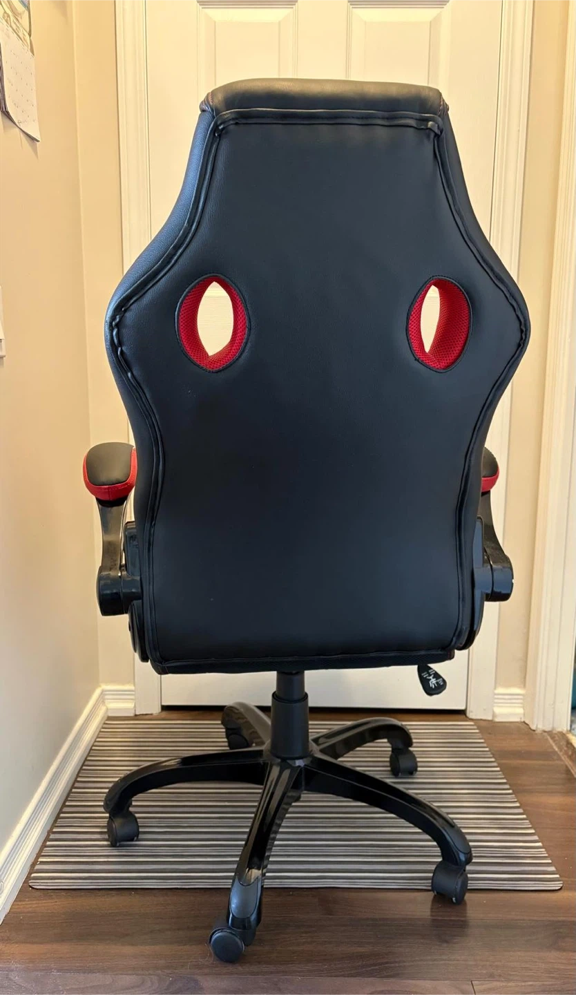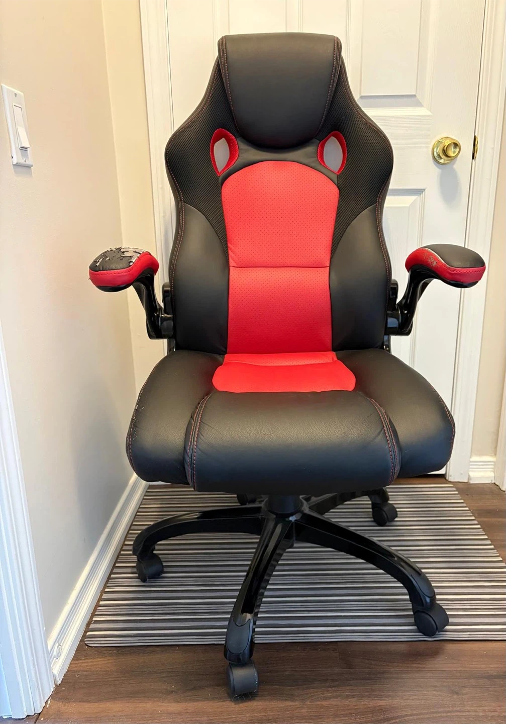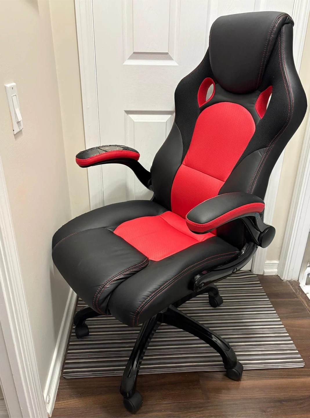 Buy & SellGaming ChairGaming Chair$74A gaming chair in black and red. It has adjustable armrests and a swivel base. Some wear is visible on the armrests.ConditionLike newWHERE TO MEETRioCan EmpressView MapSELLERBaharNorth York Center824 reviews0 chats·1 favorites·41 viewsSEND CHAT TO SELLERHi Bahar! I’m interested in your listing.Hi Bahar! I’m interested in your listing.Get the Karrot app to chatSign In to chat