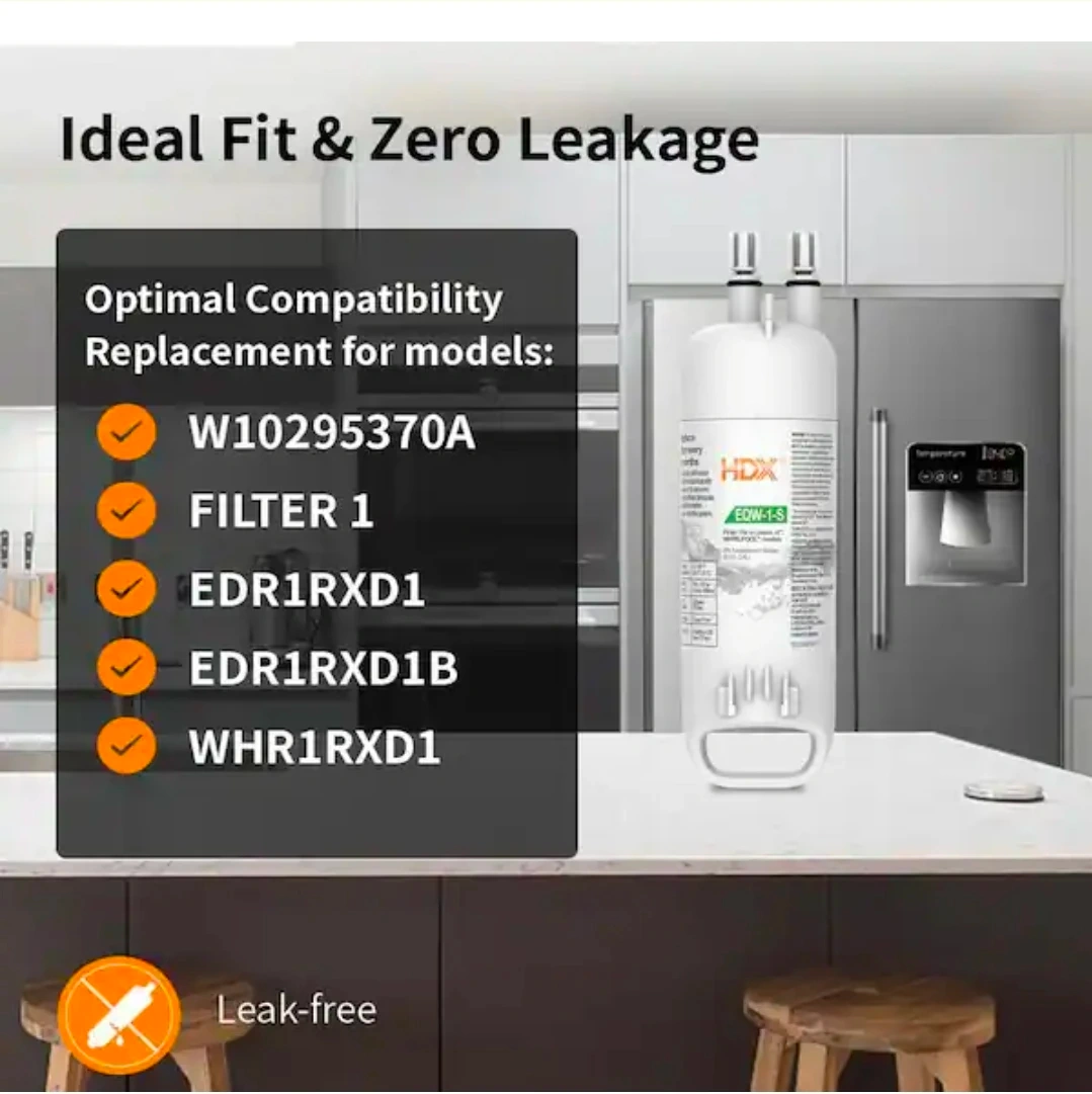 This HDX Ice & Water refrigerator filter fits in place of Whirlpool W10295370A, Filter 1, EDR1RXD1, EDR1RXD1B, and P4RFWB.