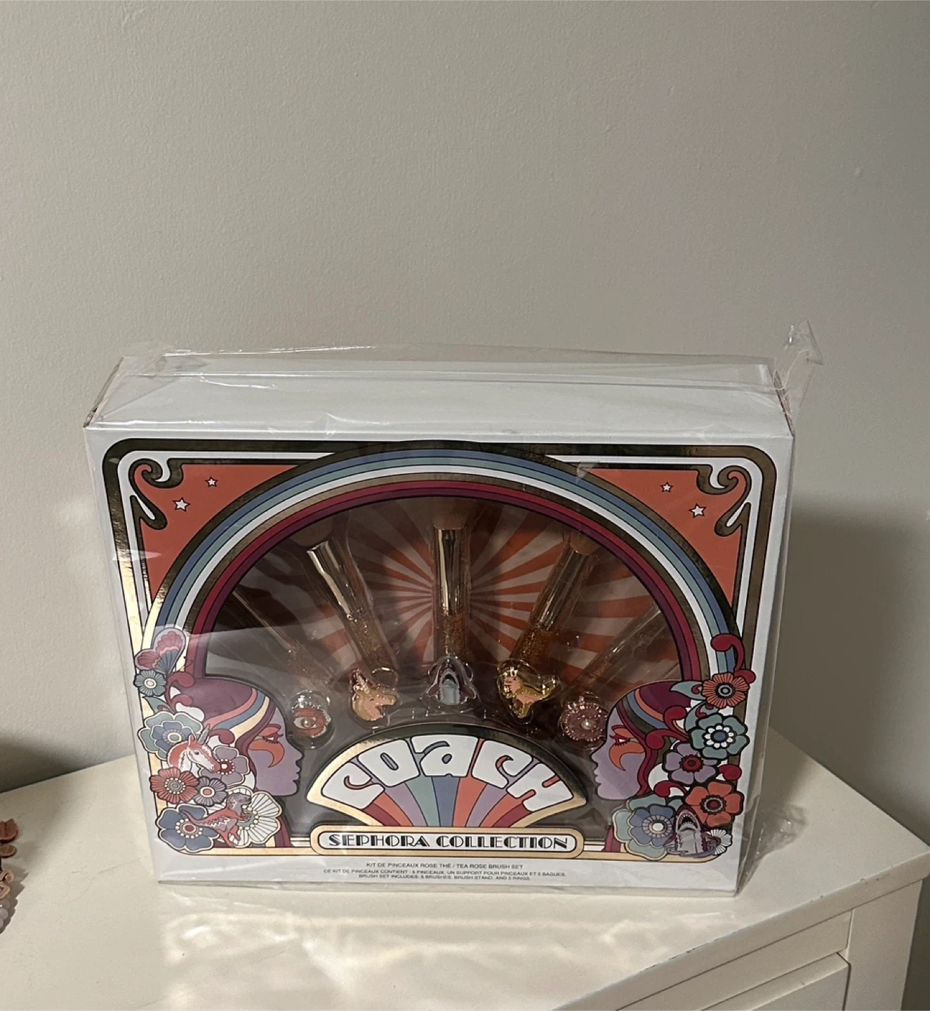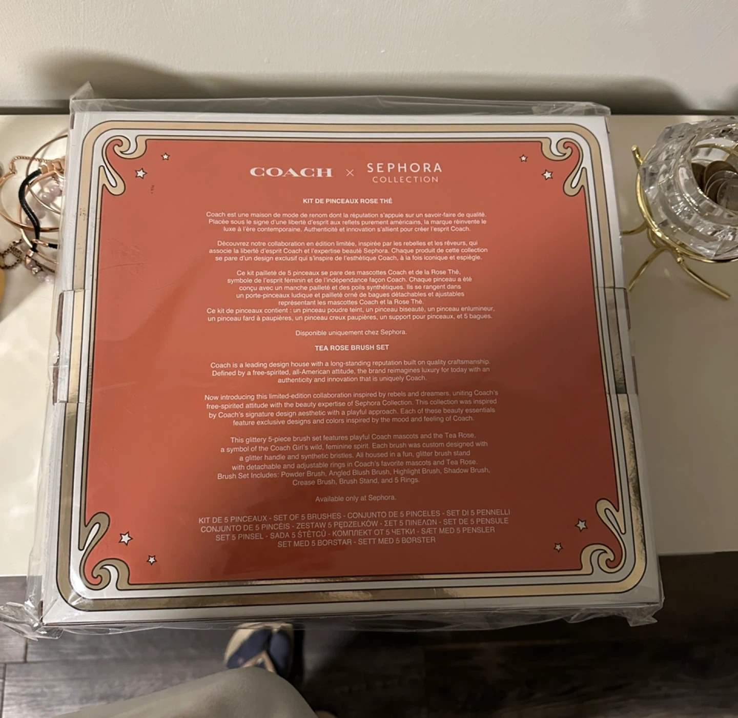 This limited-edition collaboration features a 5-piece makeup brush set with a fun glitter brush stand. The set includes a powder brush, angled brush, highlight brush, shadow brush, and crease brush. It also comes with 5 rings.