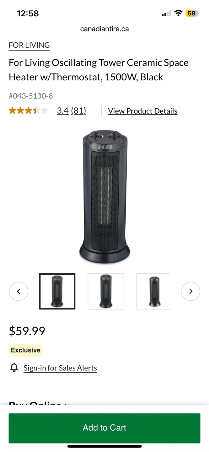 Buy & SellFor Living Oscillating Tower Ceramic Space HeaterFor Living Oscillating Tower Ceramic Space Heater$40Black, 1500W, with thermostat. Oscillating. No longer needed.ConditionLike newBrandFor LivingWHERE TO MEETDufferin-kingView MapSELLERverifiedCrisWest Queen West1328 reviews5 chats·6 favorites·42 viewsSEND CHAT TO SELLERHi Cris! I’m interested in your listing.Hi Cris! I’m interested in your listing.Get the Karrot app to chatSign In to chat
