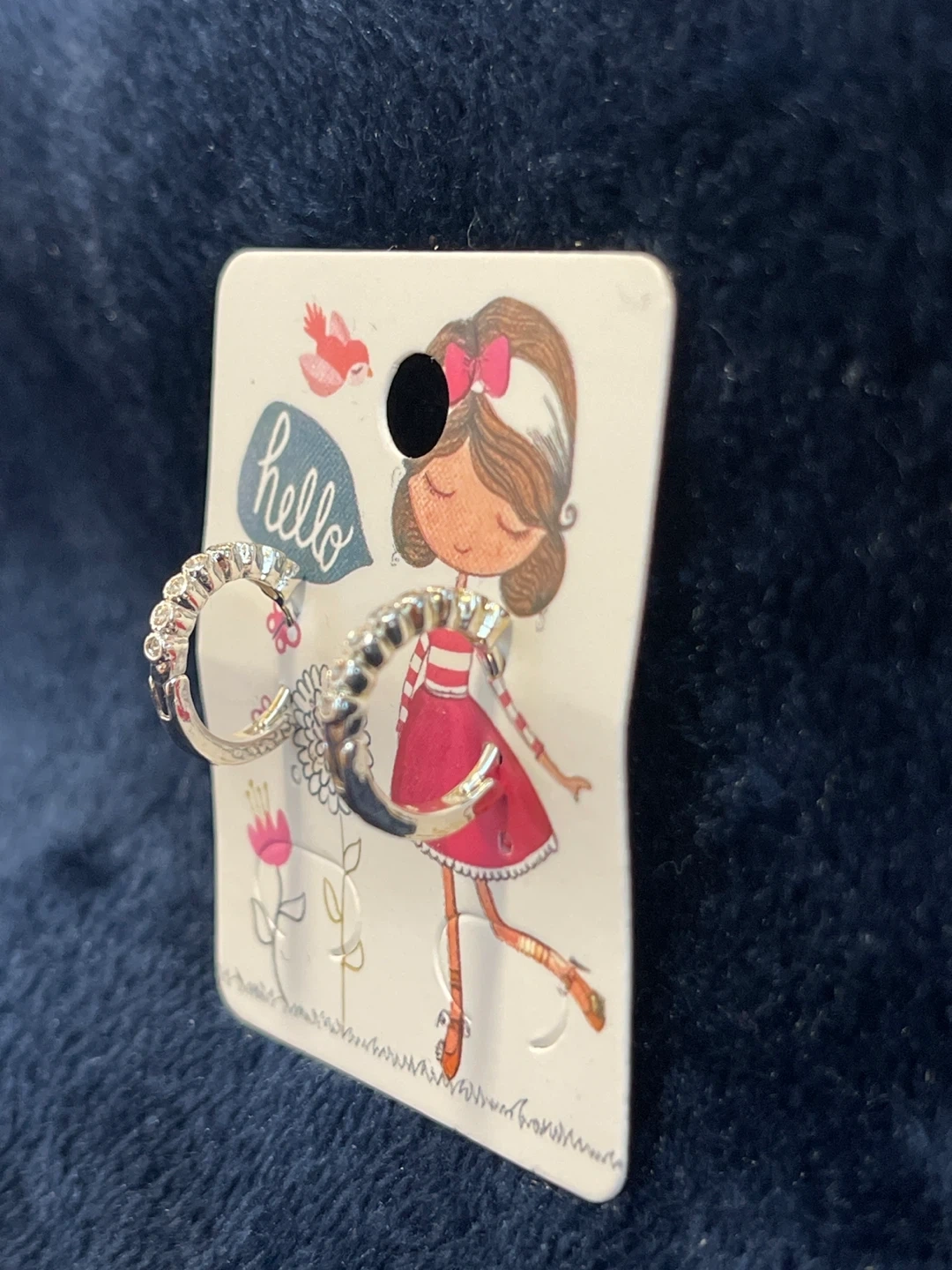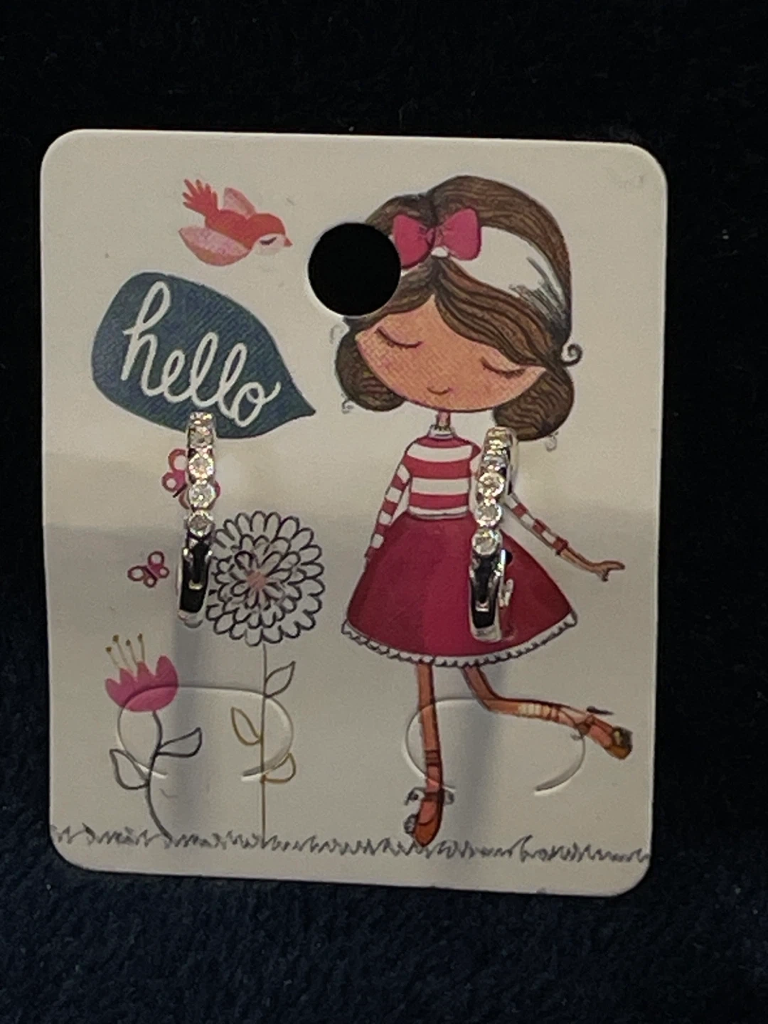 These are a cute pair of silver-tone hoop earrings! They are new and have never been worn. Perfect for adding a little sparkle to any outfit