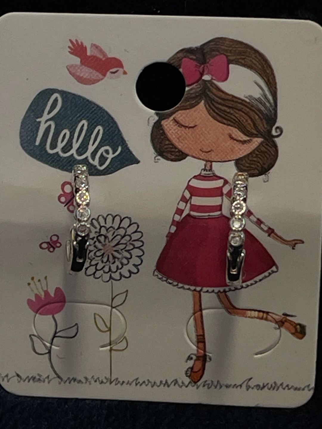 These are a cute pair of silver-tone hoop earrings! They are new and have never been worn. Perfect for adding a little sparkle to any outfit