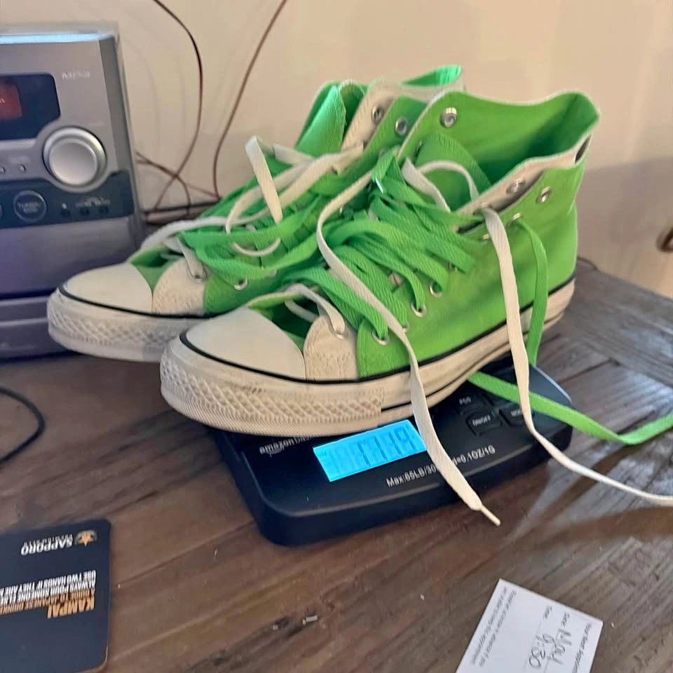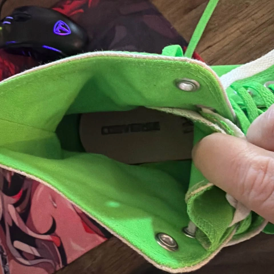 These lime green hightops have some light wear, but nothing that can't be cleaned up. Feel free to message if you have any questions!