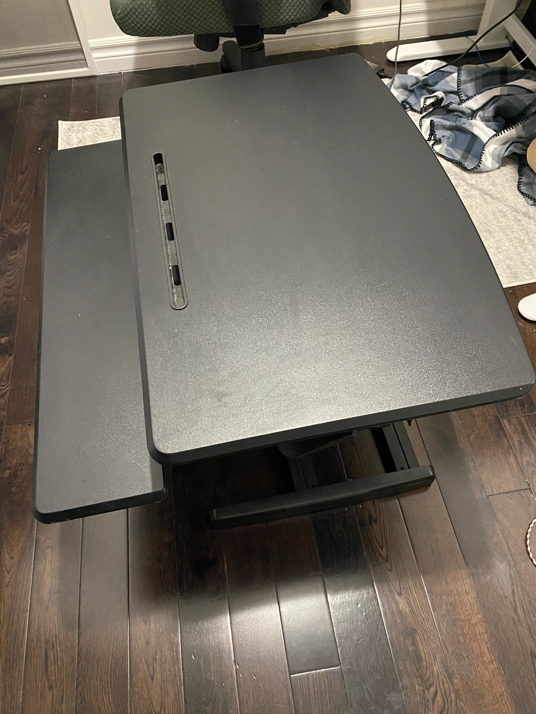 * Turns any flat surface into an adjustable-height workspace