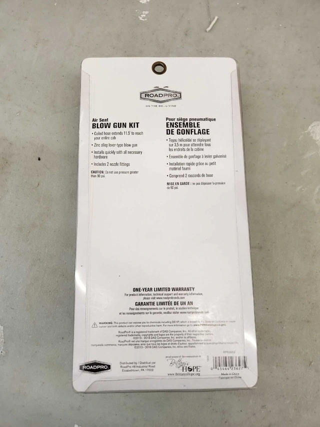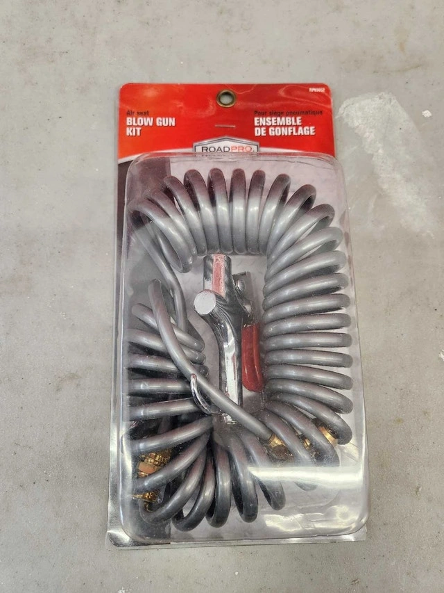 I'm selling a new RoadPro Blow Gun Kit. It features a coiled 1.5-inch hose, zinc alloy blow gun, and two nozzle adaptors to tackle various jobs with ease. Key Features: * Coiled 1.5-inch hose * Zinc alloy blow gun * Includes 2 nozzle adaptors. Looking at similar kits listed on Kijiji, a fair price point is around $20.00. If the ad is up, yes, it's available! Let me know if you're interested!