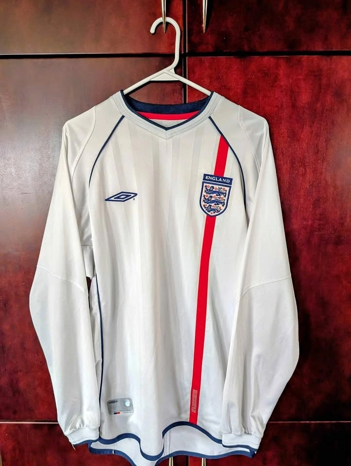 Vintage England Umbro 2001/2003 Home Kit Long sleeve (rare). 9/10 condition. No tears or stains, hand washed and clean. Amazing jersey for the upcoming World Cup! Pickup in Mount Pleasant or Downtown.