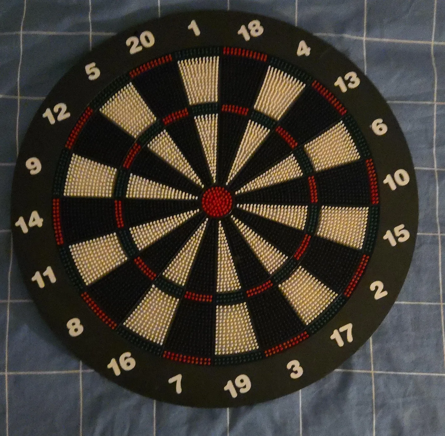 This is a standard dartboard with numbered sections. It's suitable for home or casual play. The board is made of durable material for long-lasting use.