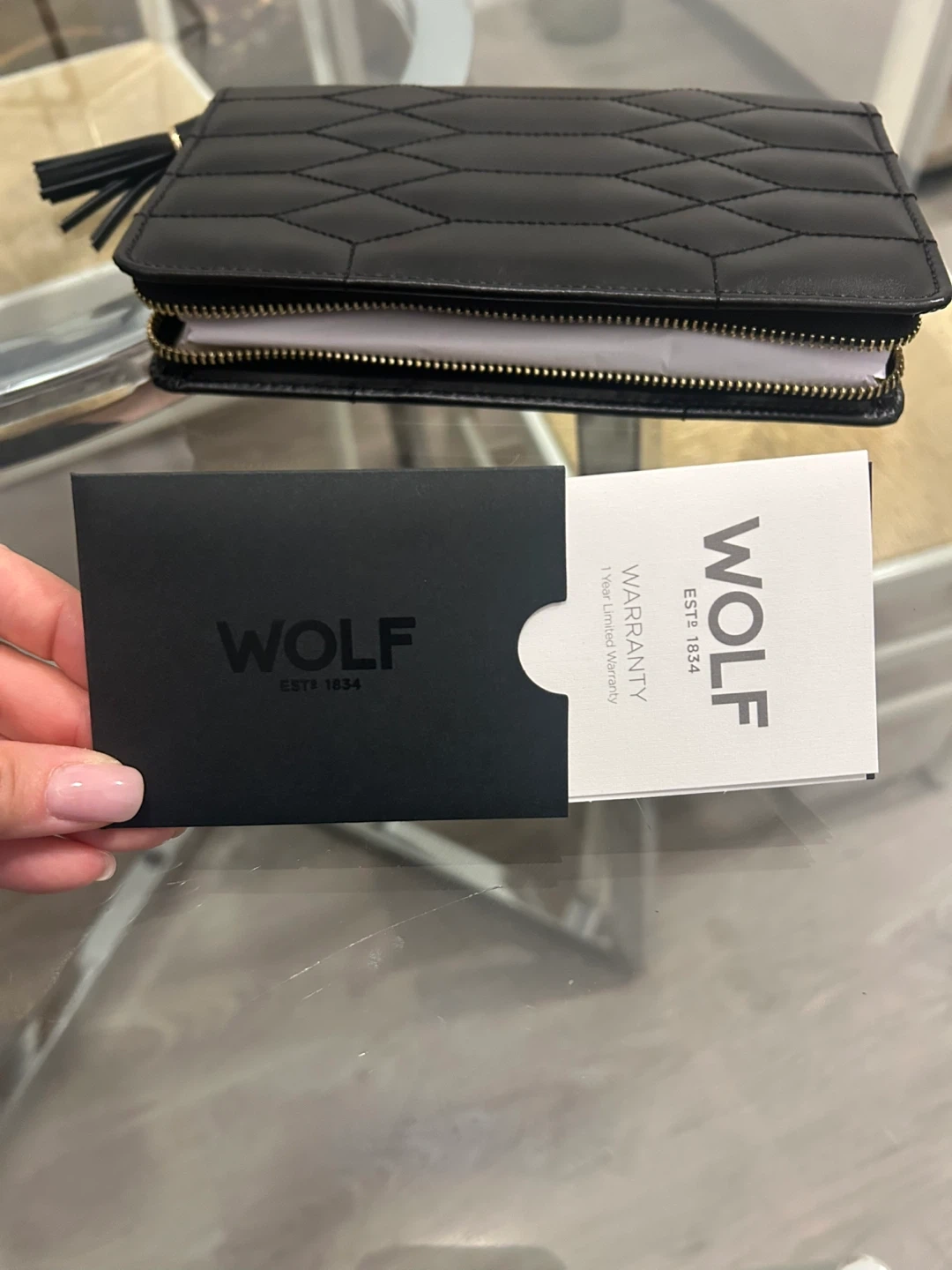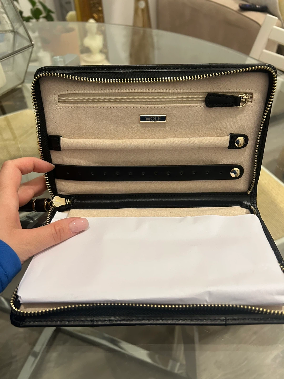 10Selling a brand new Wolf Caroline Zip Jewelry Case in black! Never used. Originally $270 CAD It's perfect for keeping your jewelry organized and safe while travelling or at home. Comes with the original box and 1 year warranty card. I got this as a gift and have one myself already.