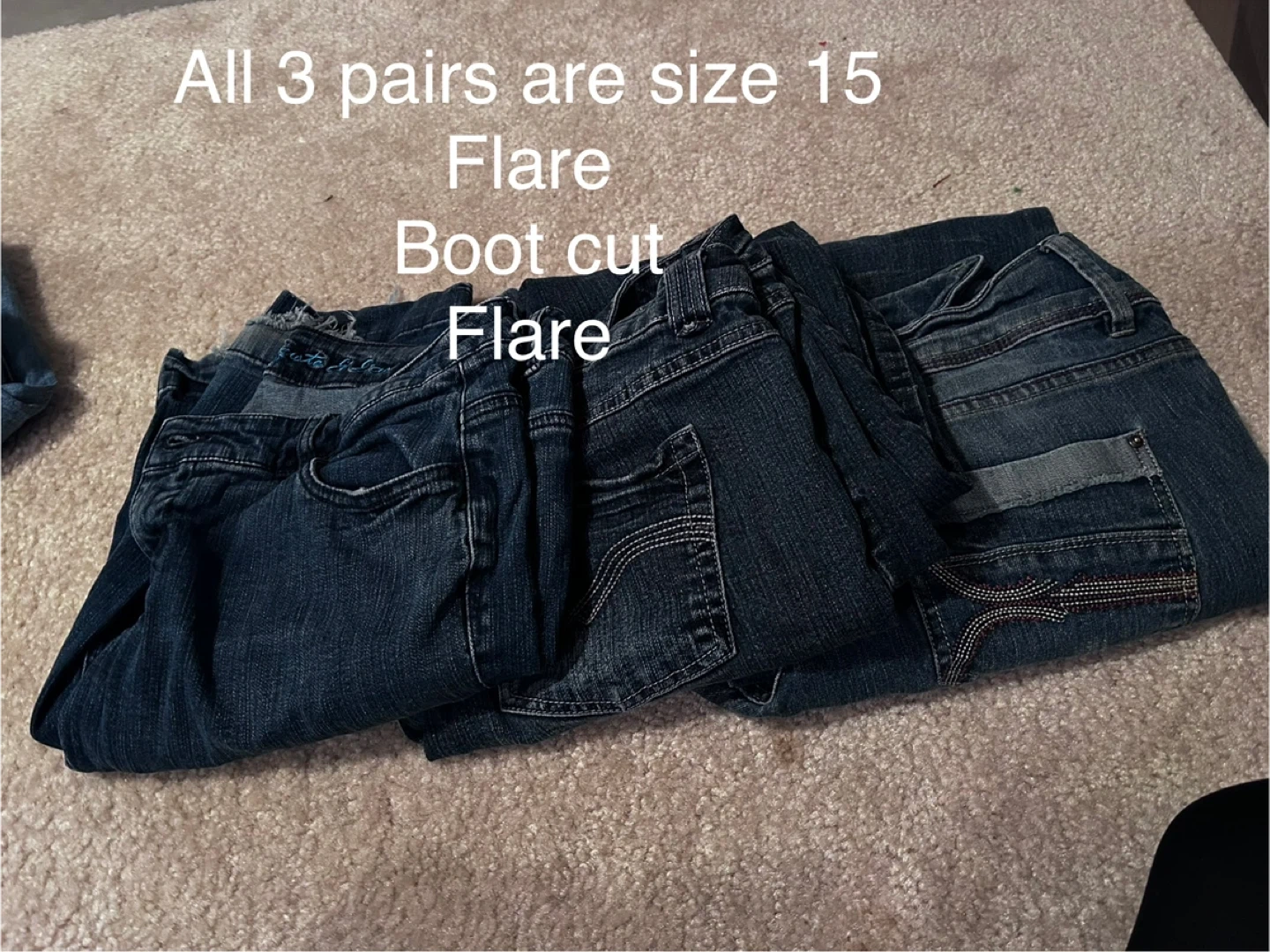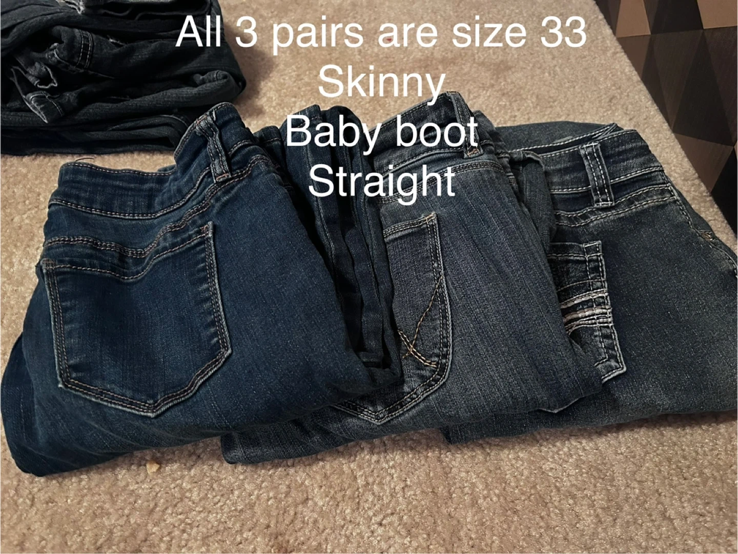 Sizes 28,5,13,XL,9,34,15 and 33 all jeans $5.00 each
