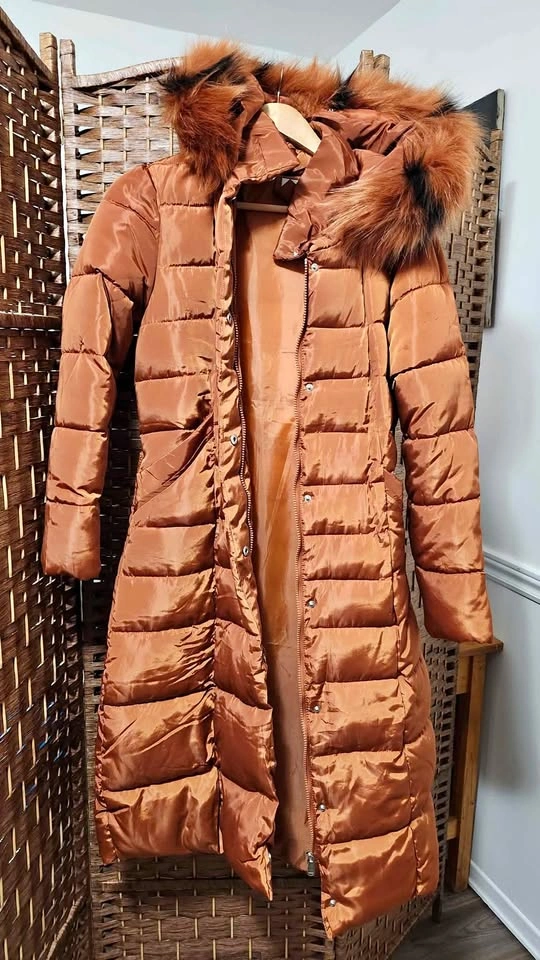 15Yes, it's still available, in East London, close to Argyle Mall Stay warm and stylish this winter with this long, bronze-coloured woman's winter coat, complete with a faux fur-trimmed hood. This coat is in good, like new condition, just used once, showing minimal signs of wear. It’s perfect for those cold Canadian winters. Features: * Colour: Bronze * Material: Durable outer shell with warm lining * Hood: Faux fur trim * Closure: Zipper and button * Pockets: Two front pockets If you're wondering if this coat is still available, yes it is! But don't wait too long – it might just vanish in a flurry of snowflakes!