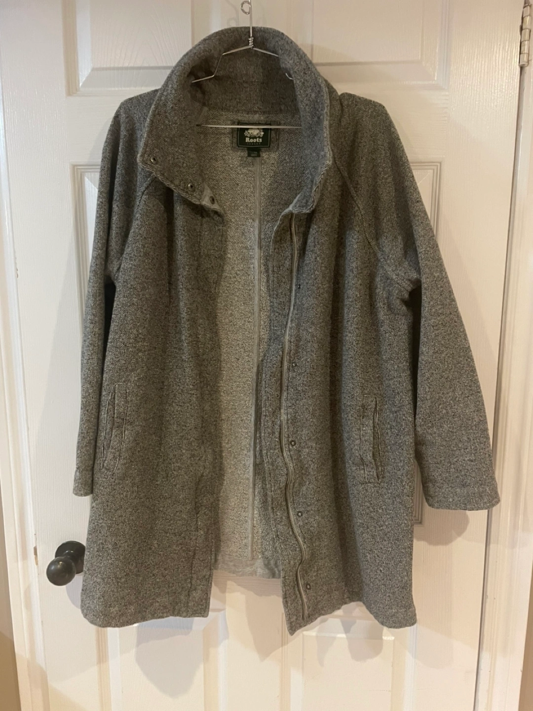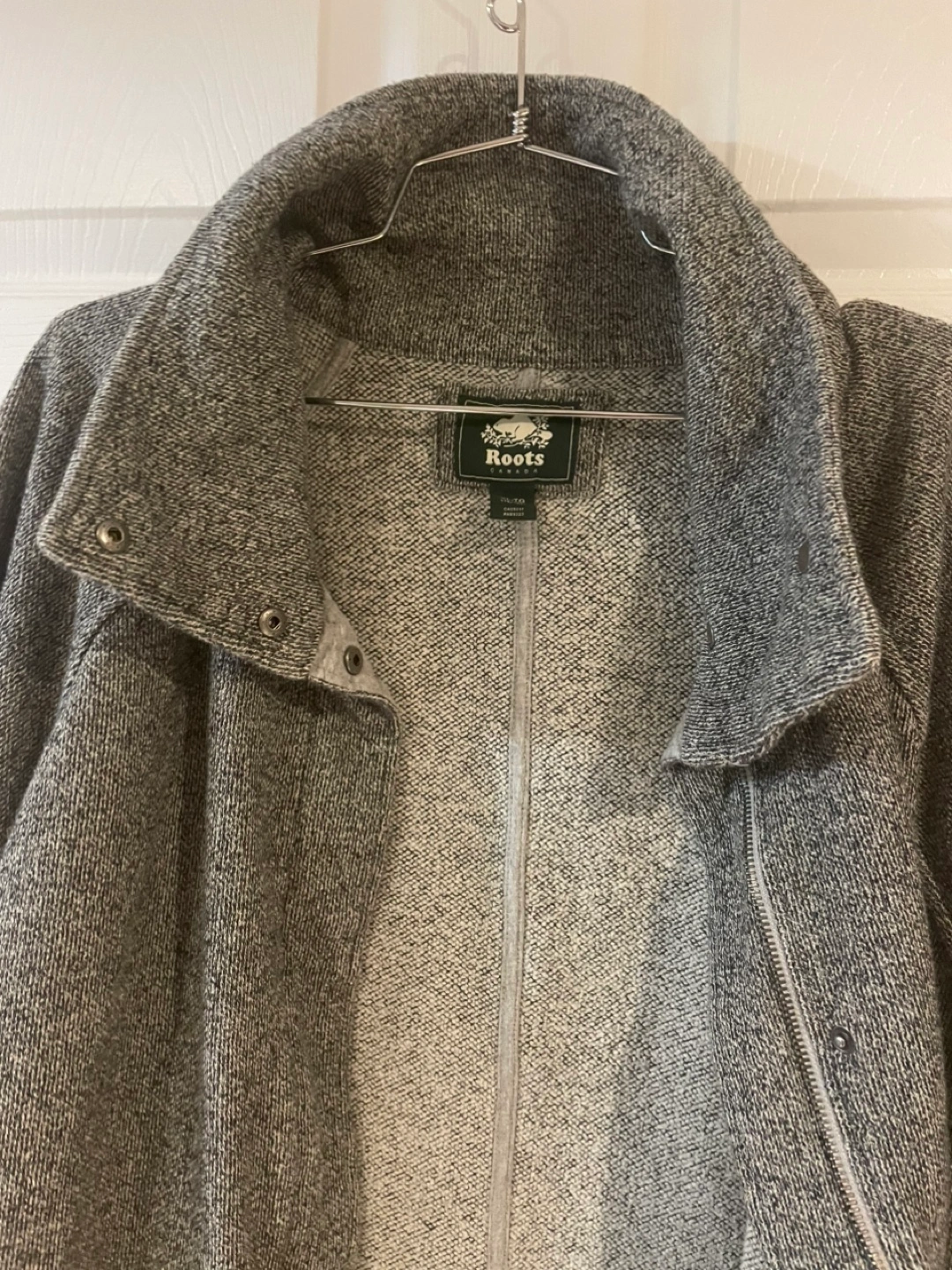 Women's grey jacket Long sleeves, zip and snap front pockets. Excellent condition.