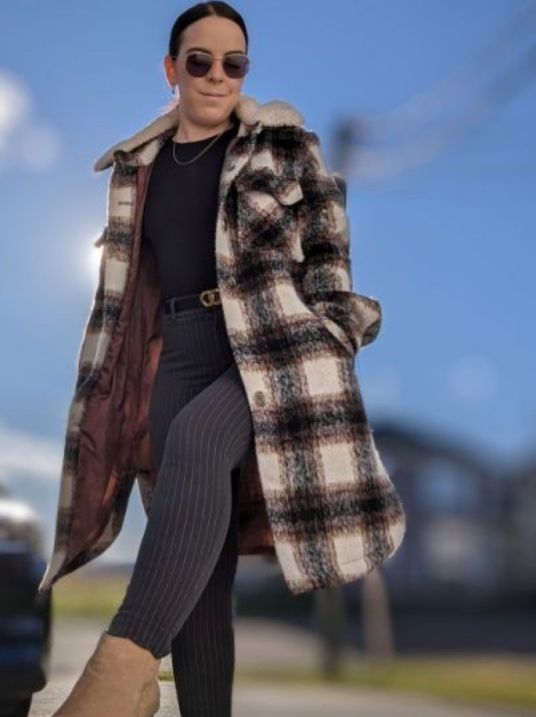Long Burgundy Jacket and Cross Pattern Fishnets