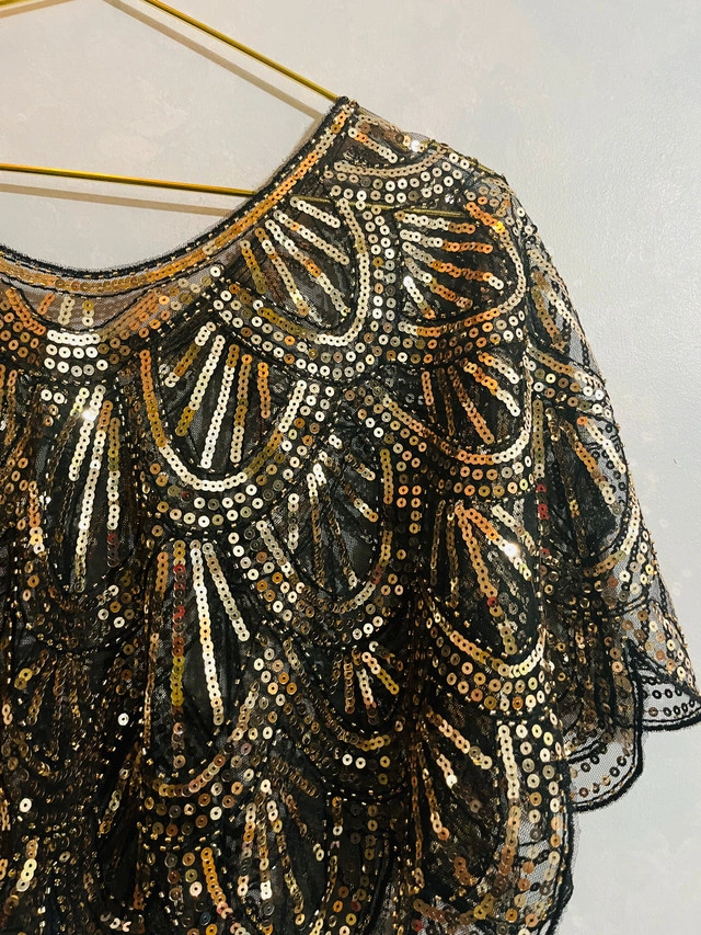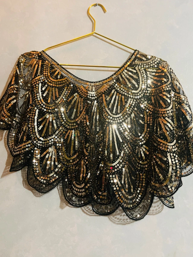 86Add a touch of sparkle to any outfit with this vintage-inspired sequin beaded top. The intricate beadwork and shimmering sequins catch the light beautifully. Perfect for a special occasion or adding some glamour to your everyday look. Available for pick up in Brampton near Sheridan College at Blue Bonnet Drive.
