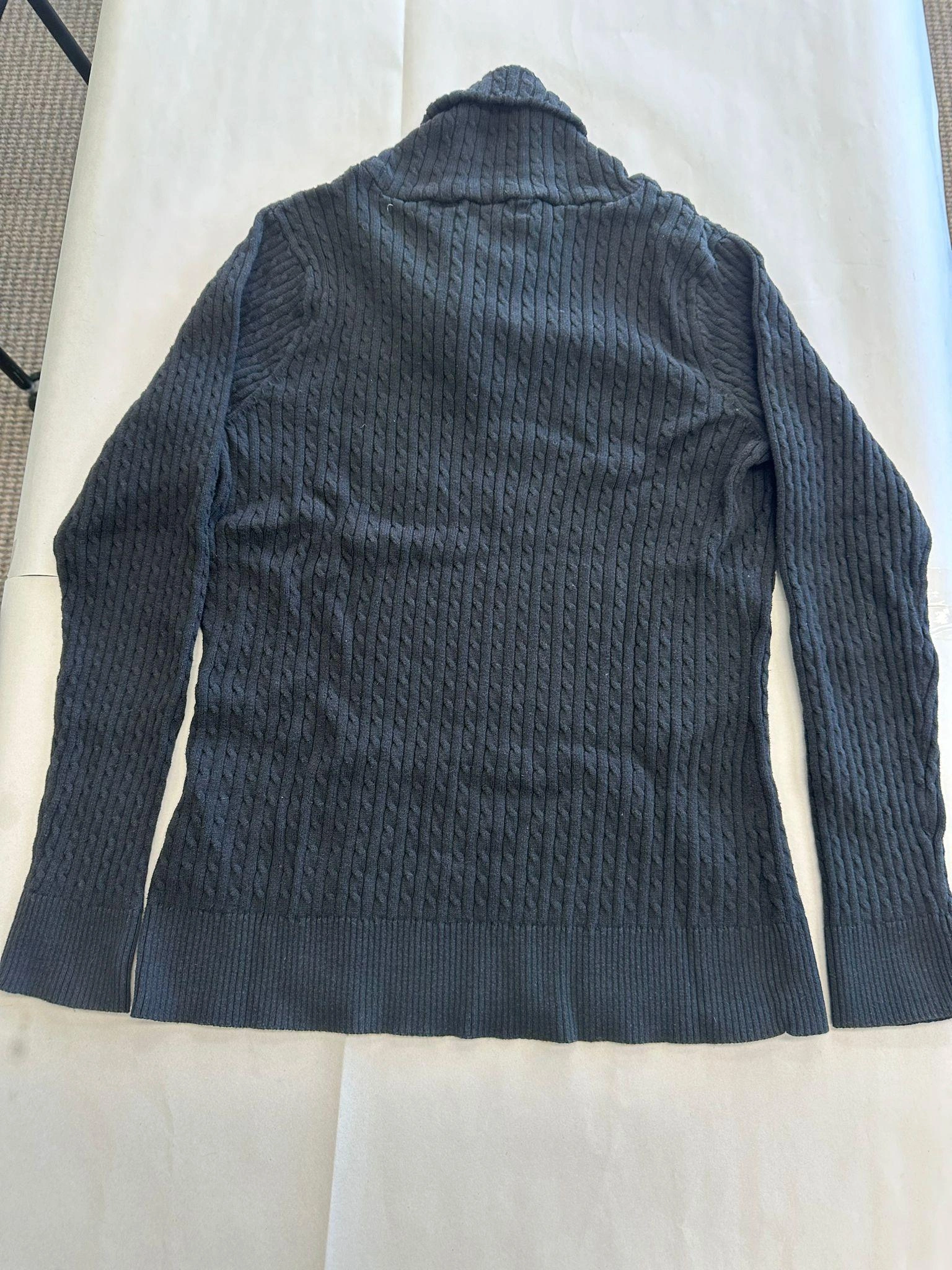 33Women/Teen long sleeve black shirt. Stretchy material. Front of neck design with a button.