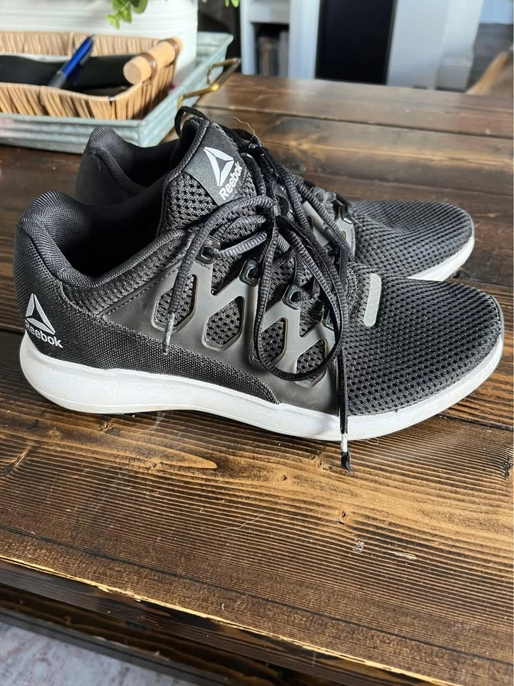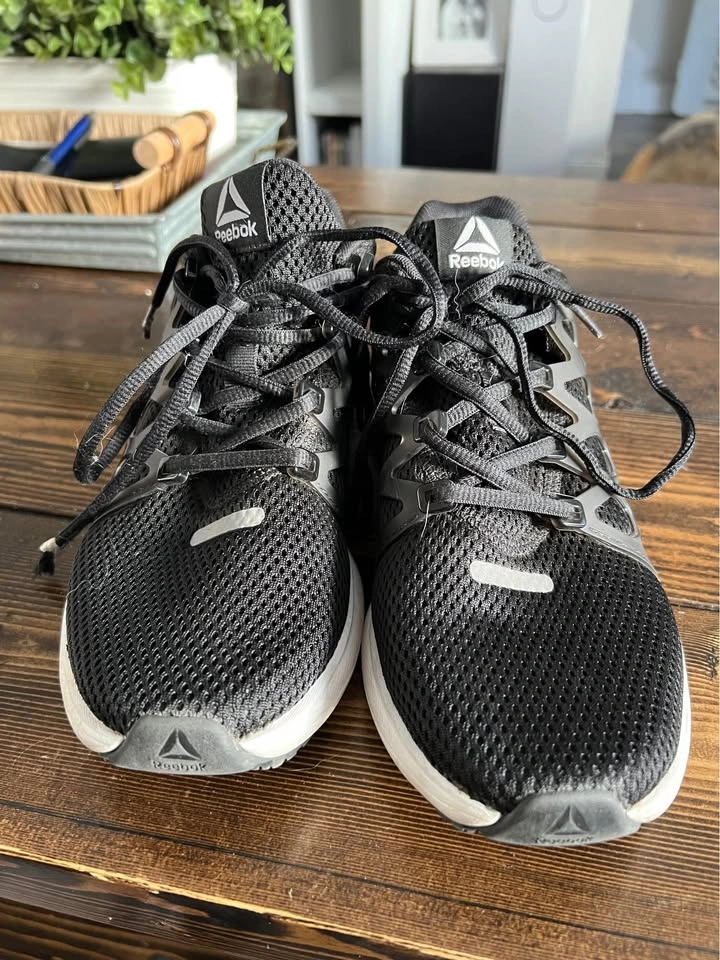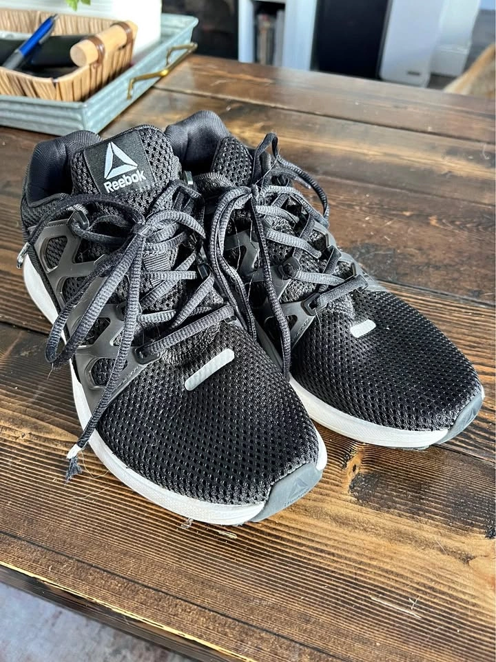 Women’s size 8.5 Reebok running shoes. Worn maybe twice. Wife didn’t like the fit with her insoles. Her loss, your gain.