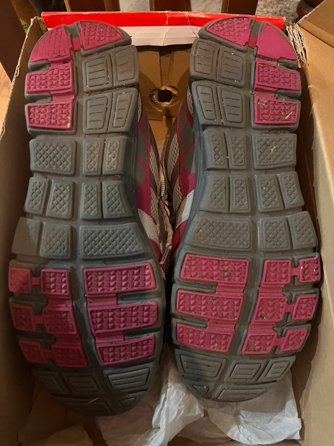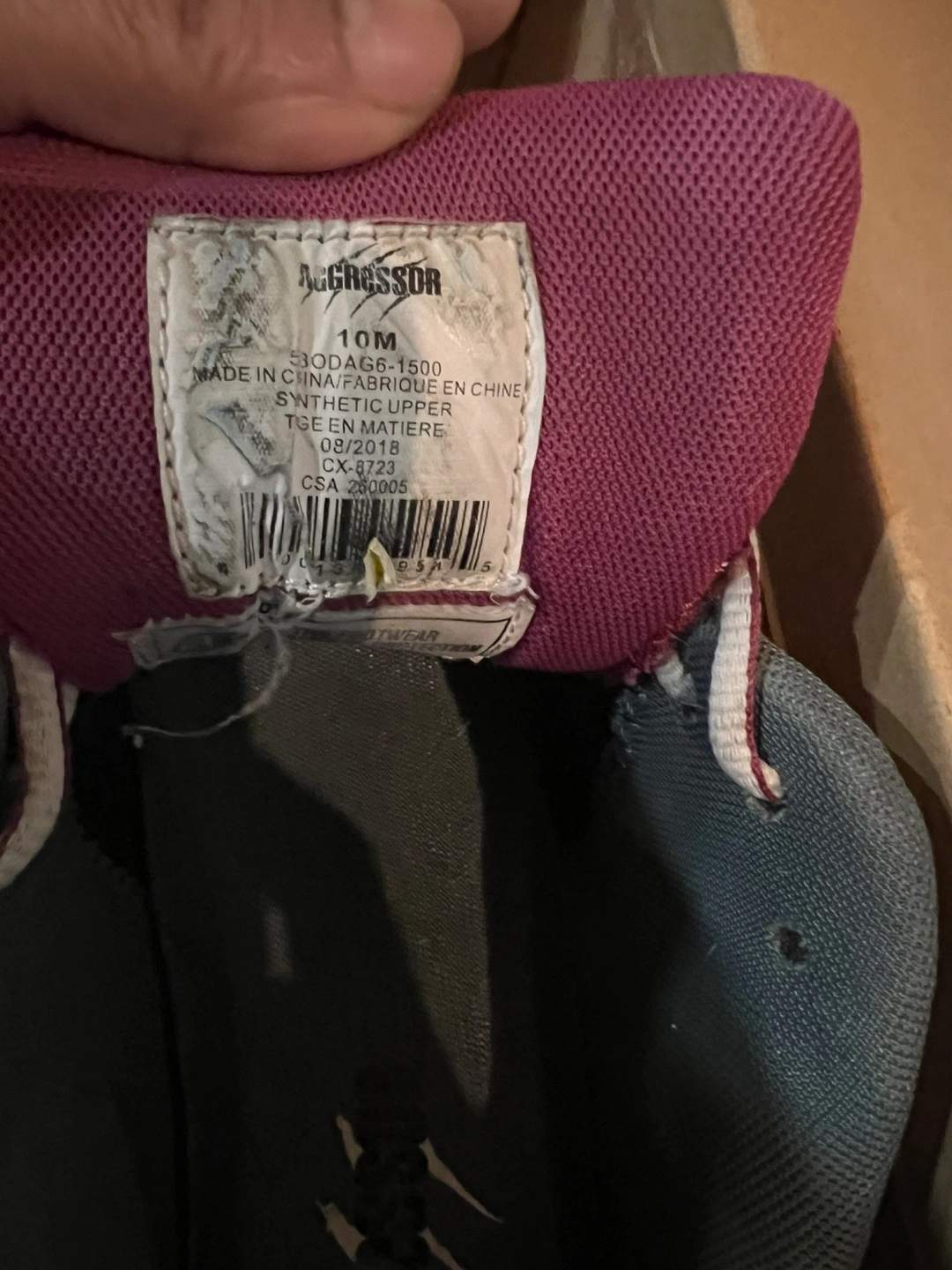180Size 10M Grey and pink athletic shoes with steel toe. In original box. CSA Green safety certified. Worn just few times. Very good for retail jobs. The insoles and back soles are in excellent condition No low bargain. No holds or e-transfers. Pickup is near Bramalea City Centre or we can decide on a mutual place.