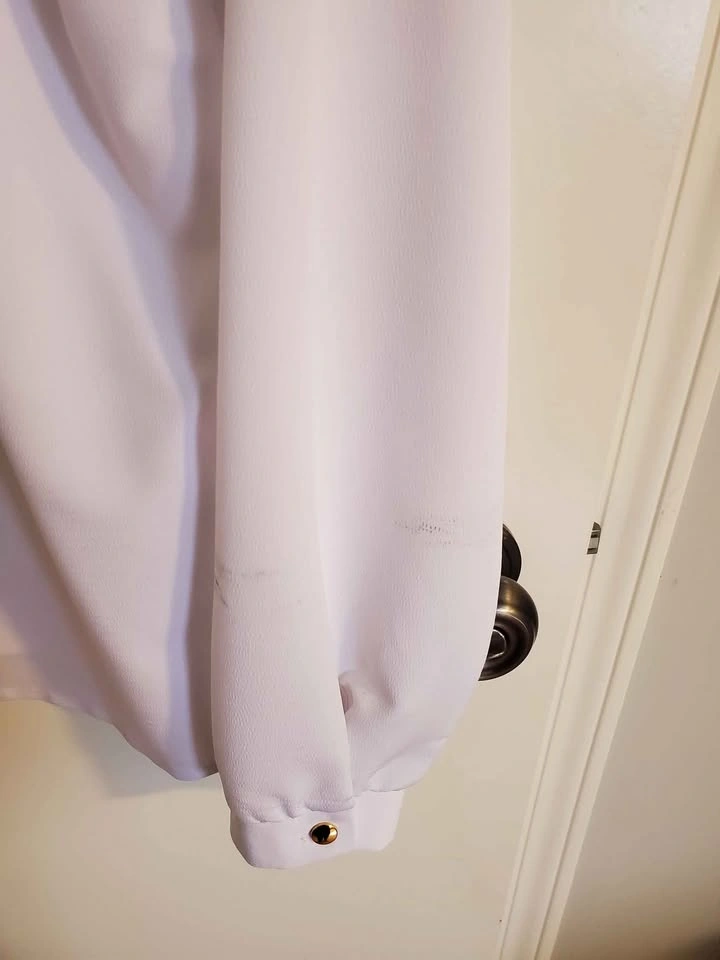 This shirt has only been worn once. There are marks on the sleeve from being shut in my closet door, which wouldn't be noticeable under a jacket/tunic.