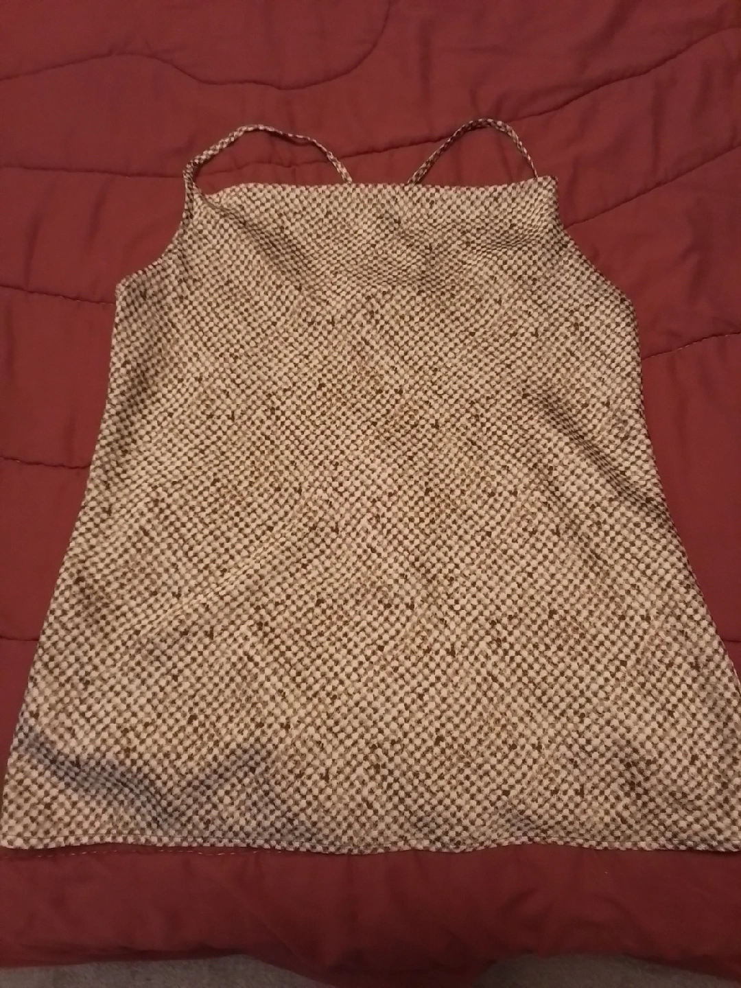 65A cute tank top with a brown and white pattern! It's in great condition and ready for a new home