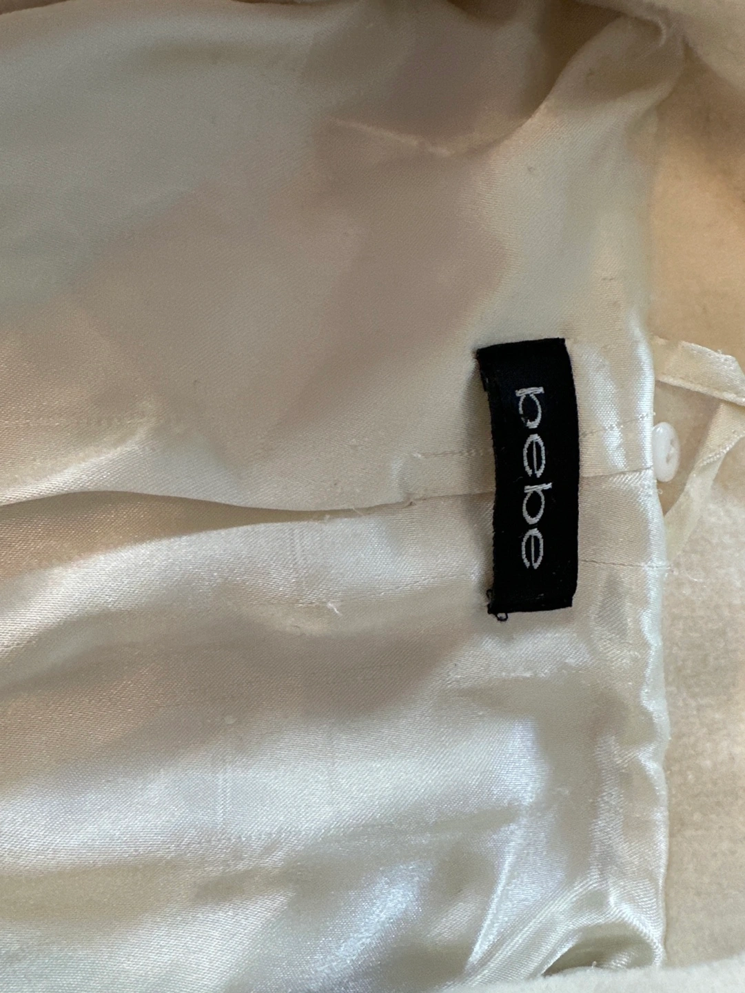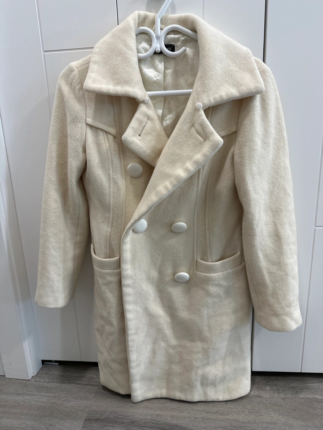 Off white coloured wool peacoat. Double-breasted with large buttons. Classic style, ideal for Spring/Fall weather.