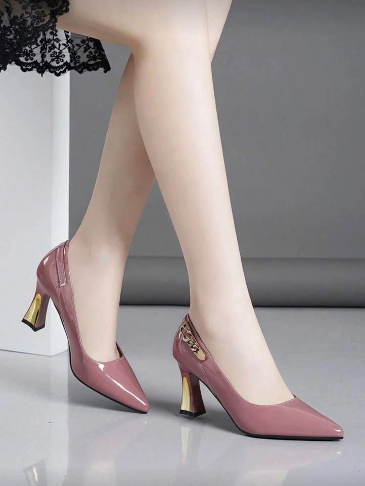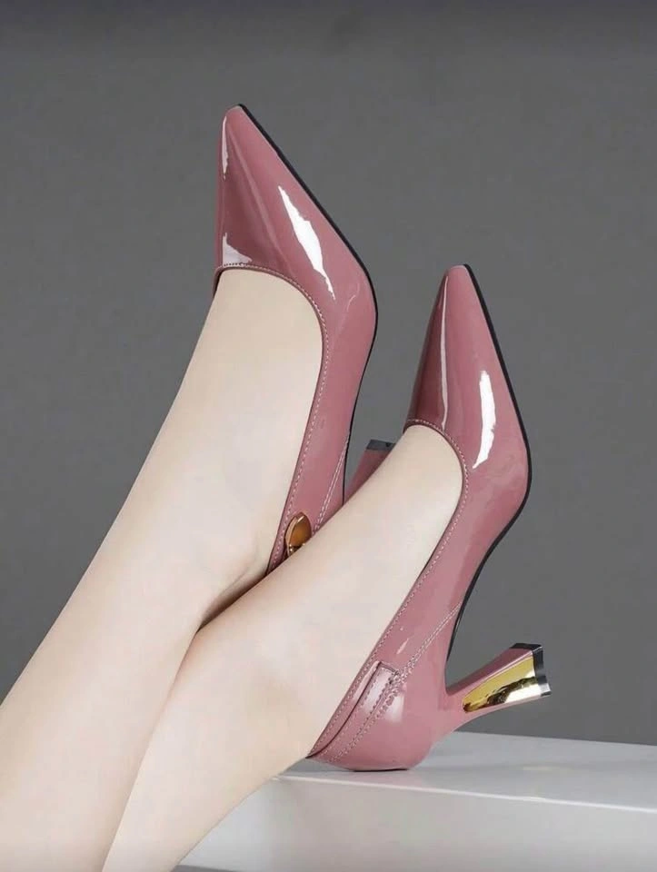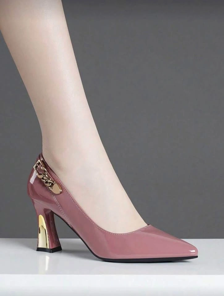 Fall/Winter 2025 Women's Fashion Buckle Decoration Solid Color Comfortable Versatile Pointed Toe High Heel Pumps, Suitable For All Season, Elegant Wore only once Pink/ US 7.5 (CN39)