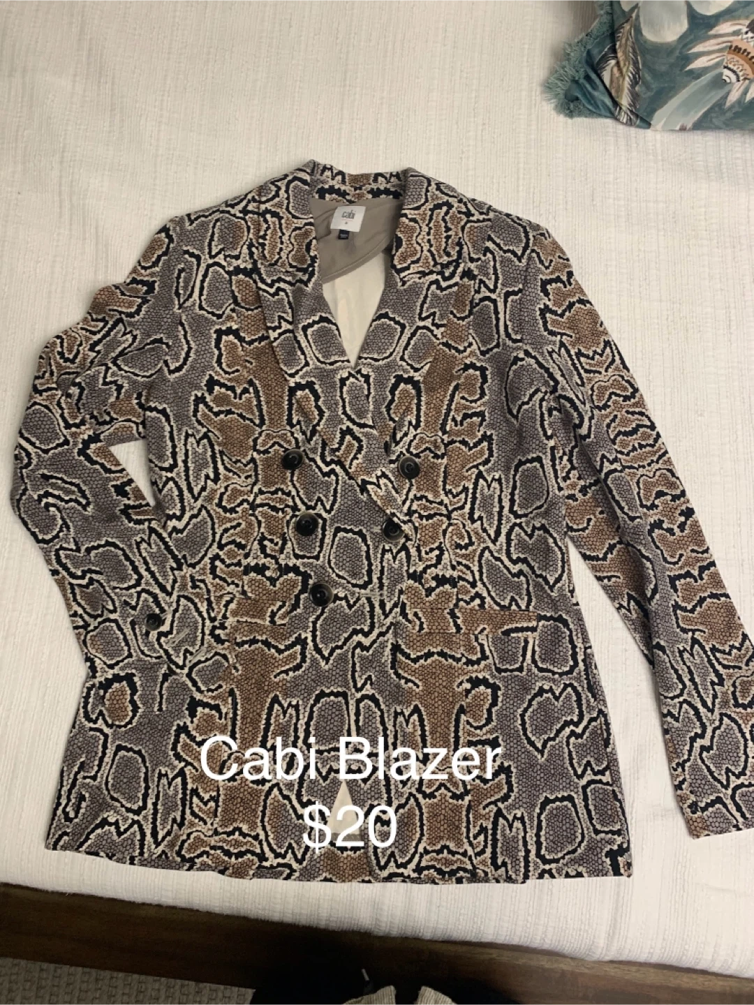 ⭐️Cute pink heels from Call It Spring, size 7! They have a fun bow detail and are in great condition ⭐️Sperry Great insoles with lots of padding. Great for walking Price firm 8.5 ⭐️Blue suede shoes size 8 ⭐️Cabi blazer size 8. Let your inner animal out. ⭐️Lionel brand vegan purse Brand new denim colour Retailed for $89 ⭐️Dex brand size M in grey black sweater.