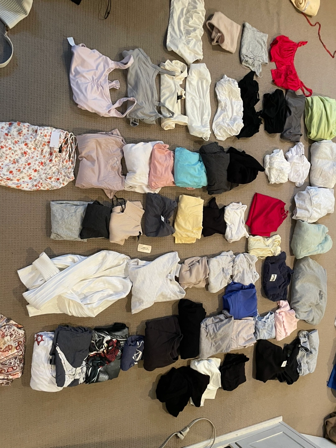 Bundle of women's clothing, mostly tops and shirts. Various colours and styles, includes some sweaters and a few pairs of pants. 🪻 60 pieces of womens/ girls clothing! All in good condition, some still have tags on, most only worn once! •Tank Tops •Short sleeve •Long sleeve •hoodies & zip ups •Spandex • shorts • yoga pants •dresses Aritzia, Hollister, Zara, Garage, Forever 21, H&M, ardene,cleo, sunday best, TNA & more (Easily worth over $900)