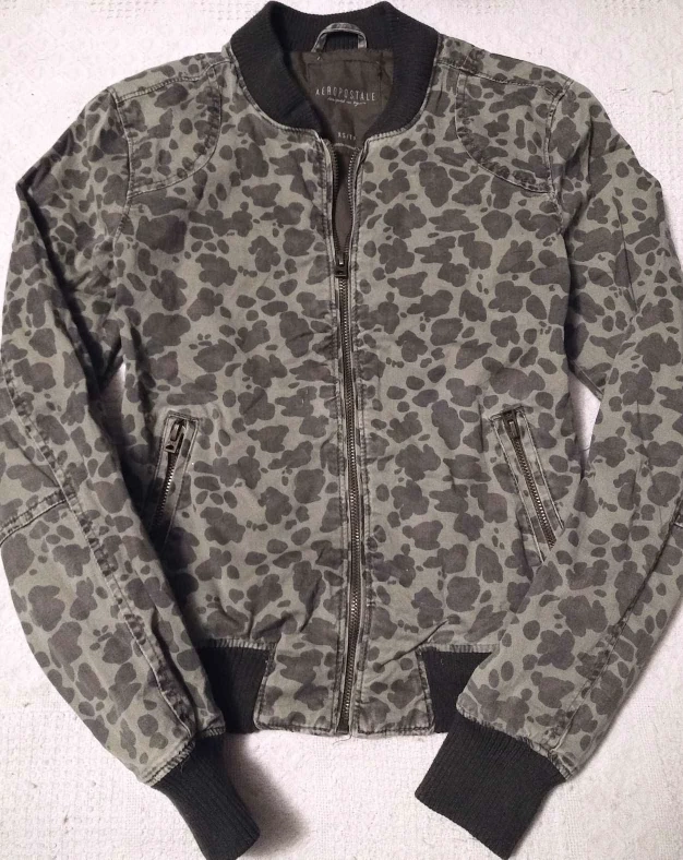 - Black Nike vintage anorak style jacket (S) $20 - Gap Jean jacket (S) $10 - Camo leopard zip jacket (XS) $10 - Green faux leather jacket is (S) $15