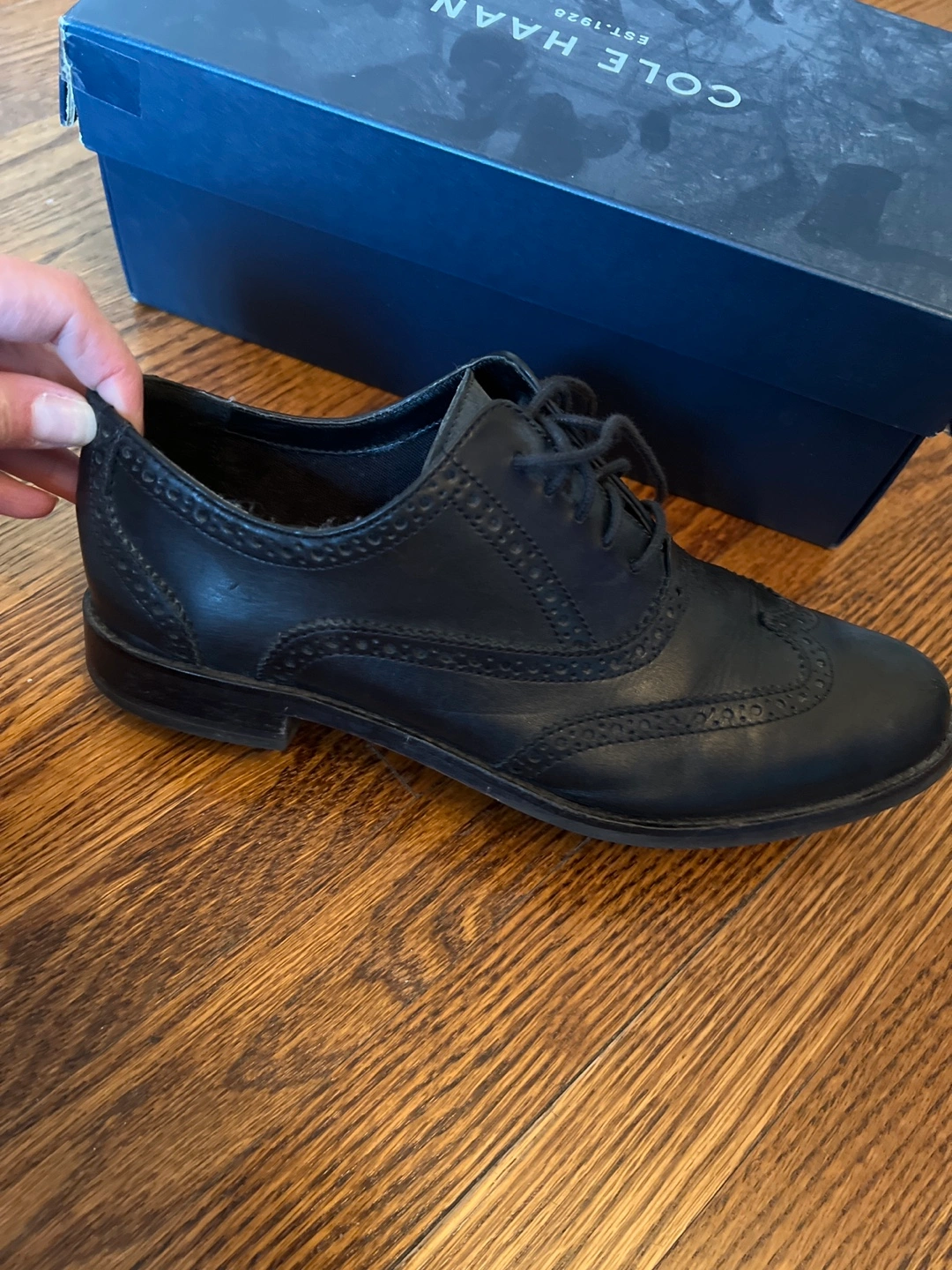 10Selling a pair of Cole Haan black leather oxfords in women's size 7.5. They are in good condition and come with the original box.
