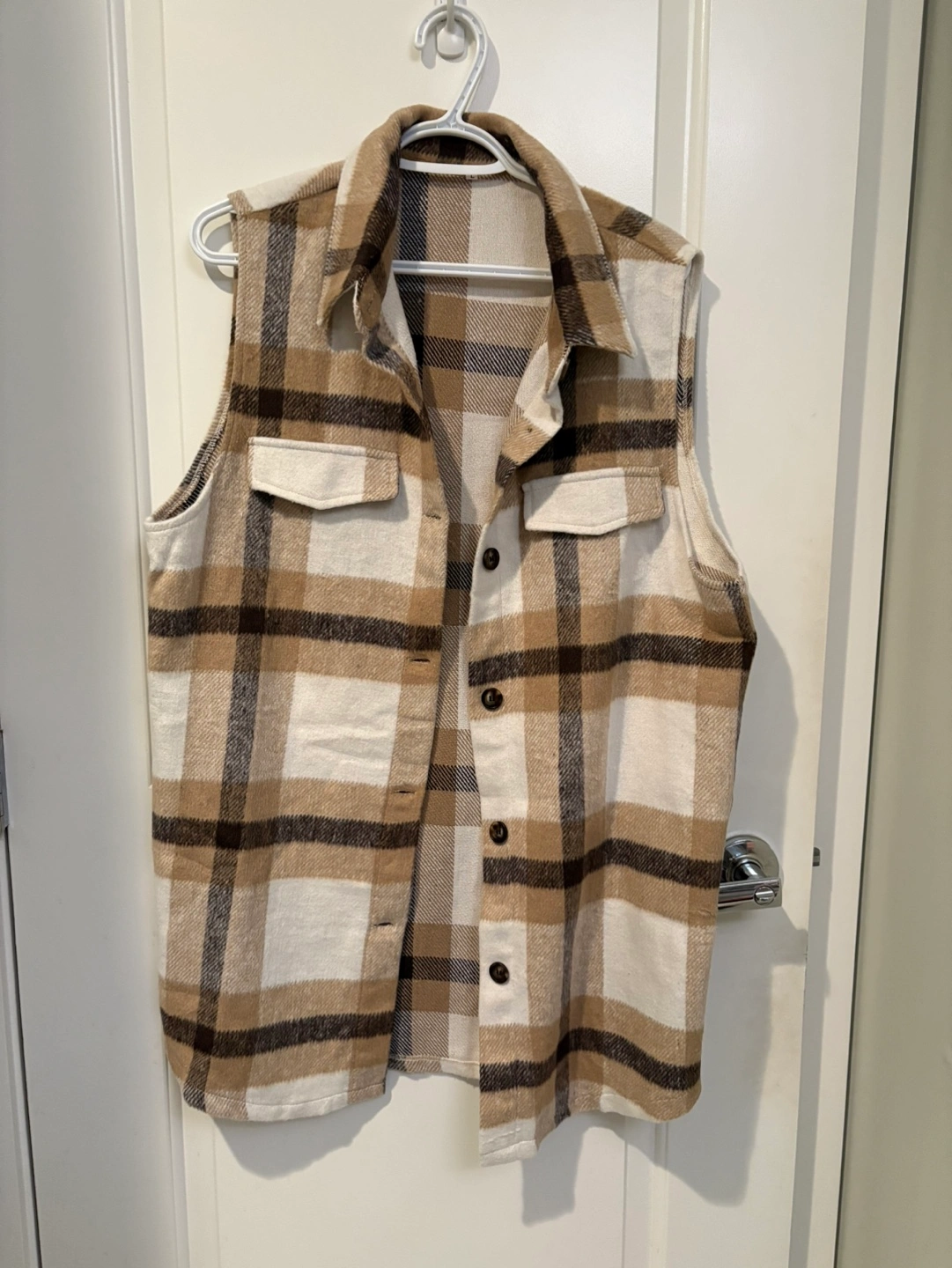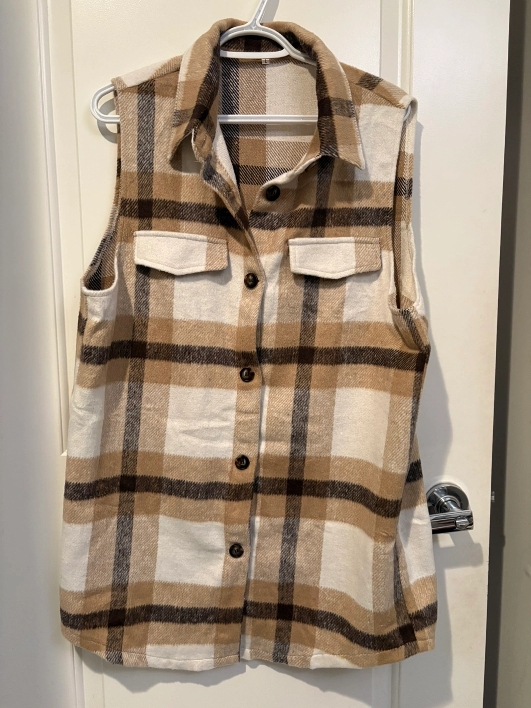 103New!! Tried it on but was bigger and longer fit than what I was looking for. Bought from Amazon. Sleeveless Shacket Women Long,Button Down,Checkered Pattern,Lapel,Wool Blend Jacket,Midi Length Material: composed of 100% polyester, soft, skin-friendly, warm and comfortable. Pick up only please.