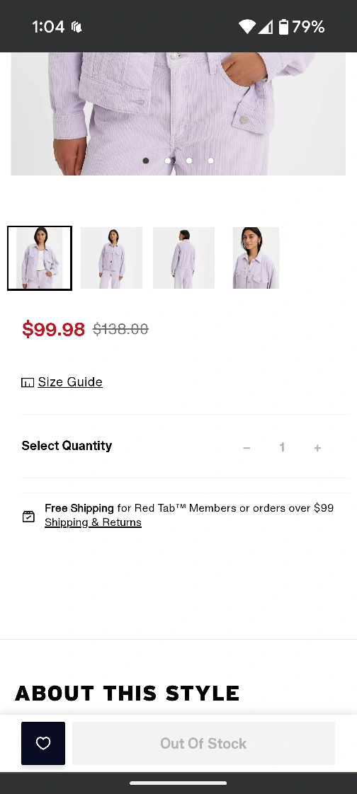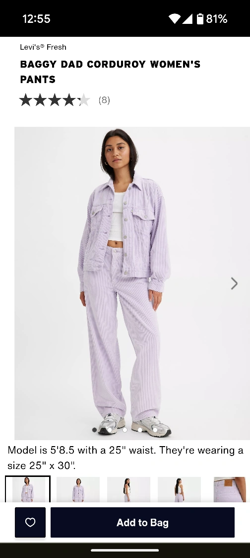 Women's Levi's Lavender Corduroy Jacket + Pants