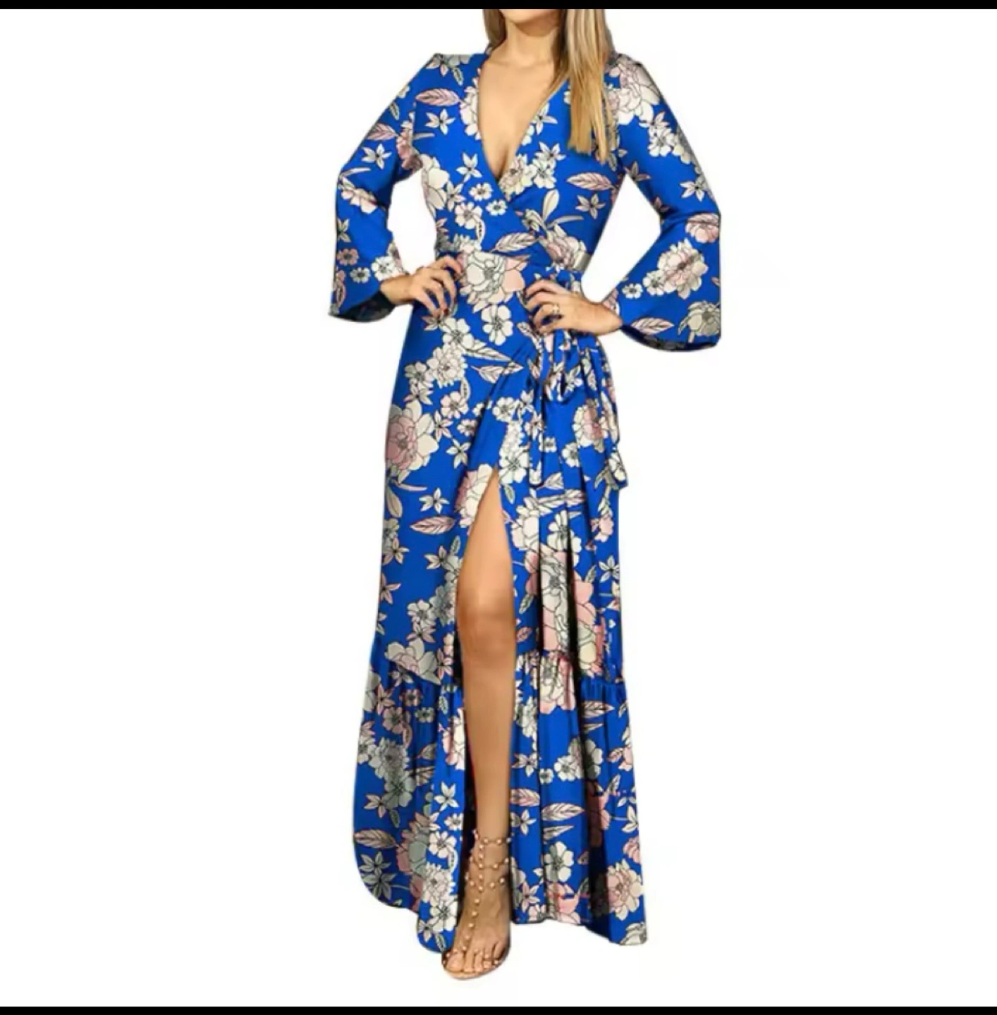 Beautiful collection of women's maxi dresses. Features various styles, including wrap dresses and one-shoulder designs. Prints range from floral and polka dots to baroque-inspired patterns. Long sleeves and flattering silhouettes. Perfect for various occasions.